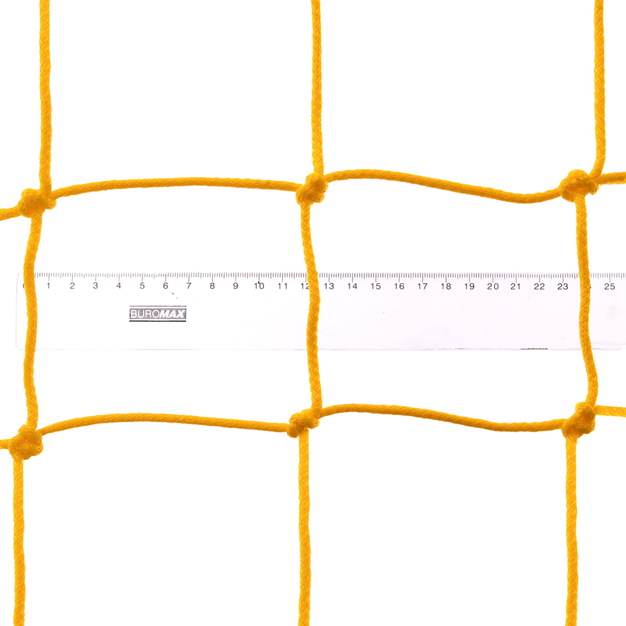Сетка для футбольных ворот с толщиной шнура 4,5 мм обладает огромным запасом прочности и может использовать для тренировок профессиональных футболистов. Размер ячейки 12х12 см не позволит мячу проскочить сквозь сетку. Полипропилен устойчив к влаге, УФ-лучам, перепадам температур. Сетку можно использовать на улице в любое время года.