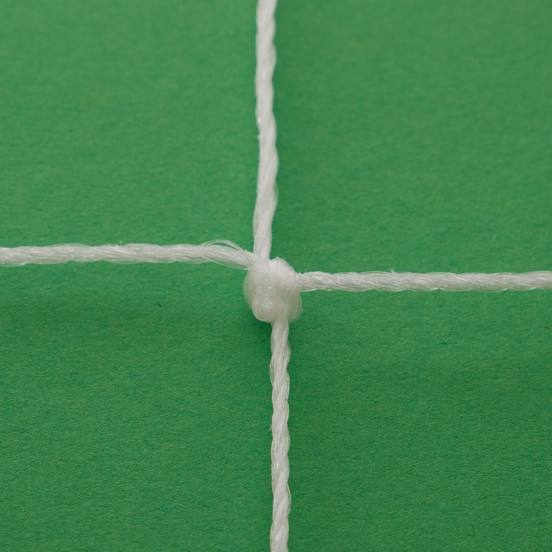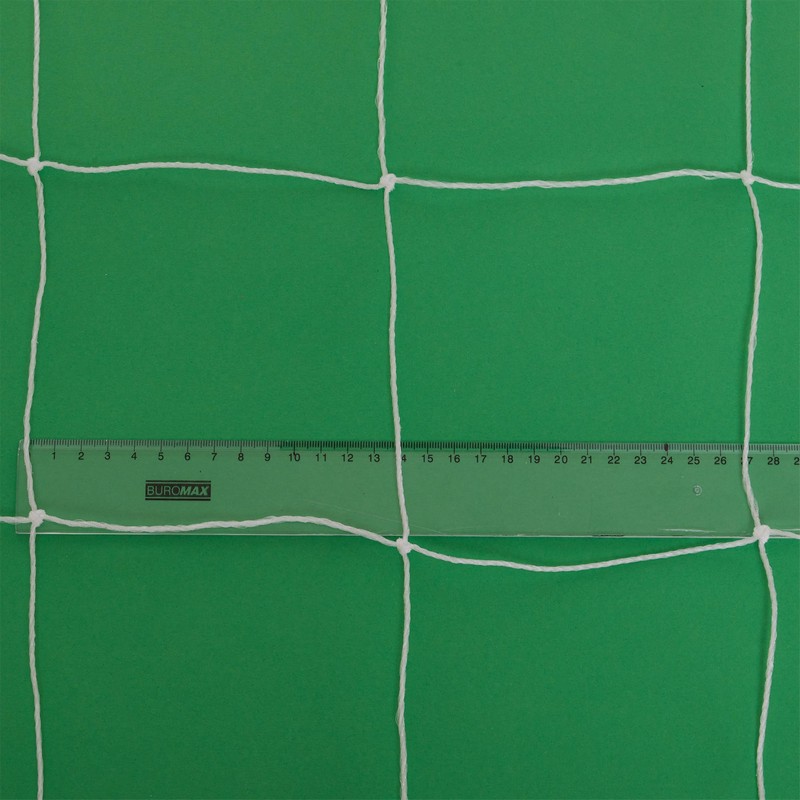 Сетка изготовлена узловым методом. Однако полипропиленовый шнур не повреждает поверхность мяча при контакте с сеткой. Размер ячейки квадратной формы составляет 14х14 см.