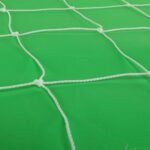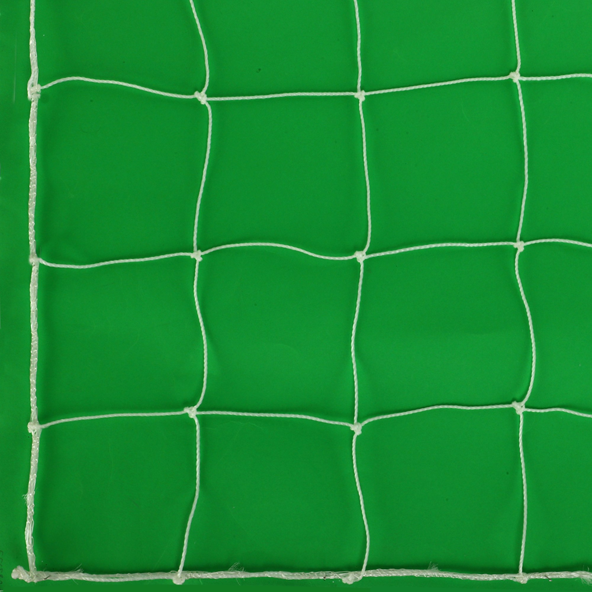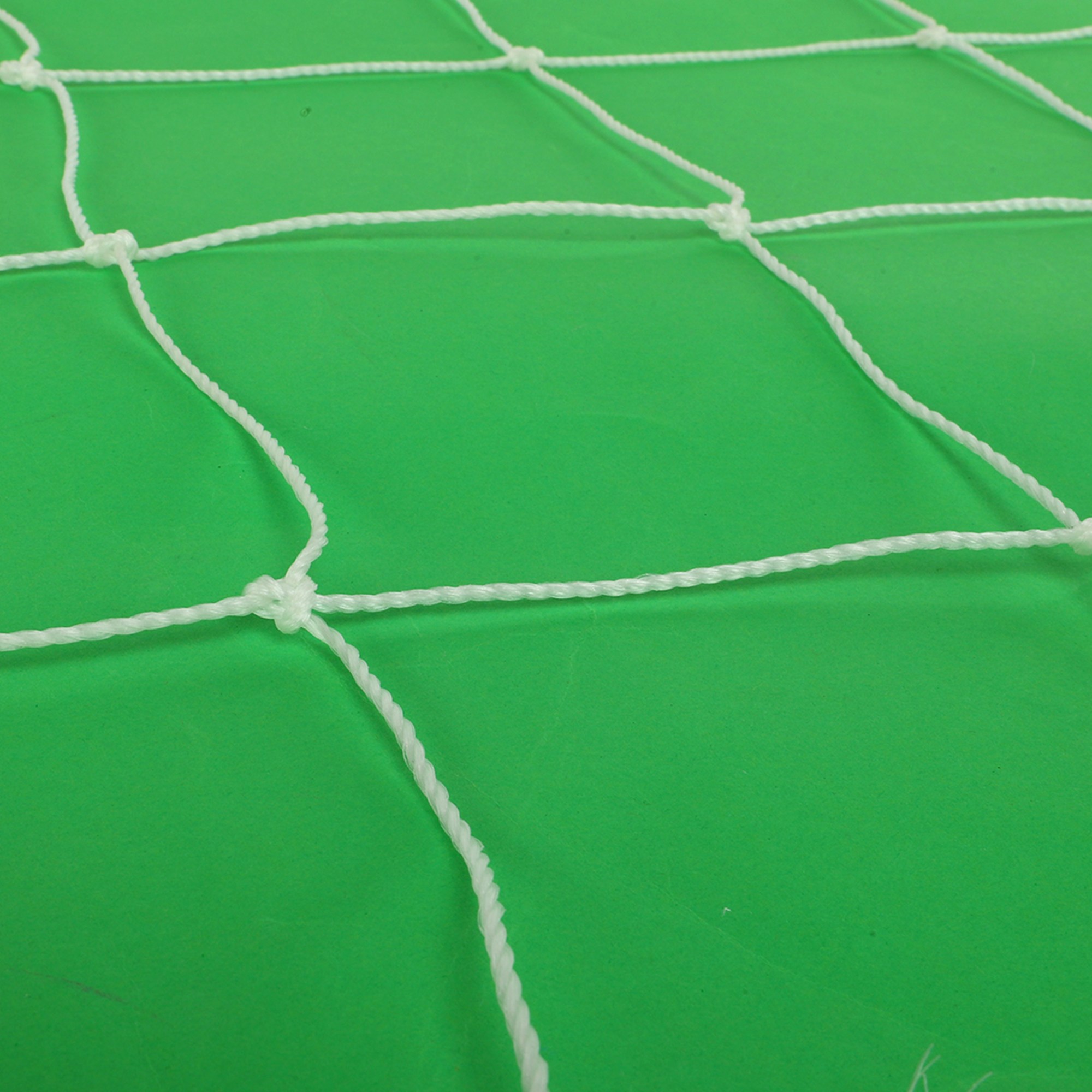 Сетки изготовлены из полиэтилена. Этот синтетический материал не восприимчив к воздействию влаги и прямых солнечных лучей. Толщина шнура, из которого изготовлена сетка, составляет 3 мм. Это стандартный размер шнура для сеток для футбольных ворот. Запаса прочности такой сетки хватит для игр и тренировок взрослых команд.