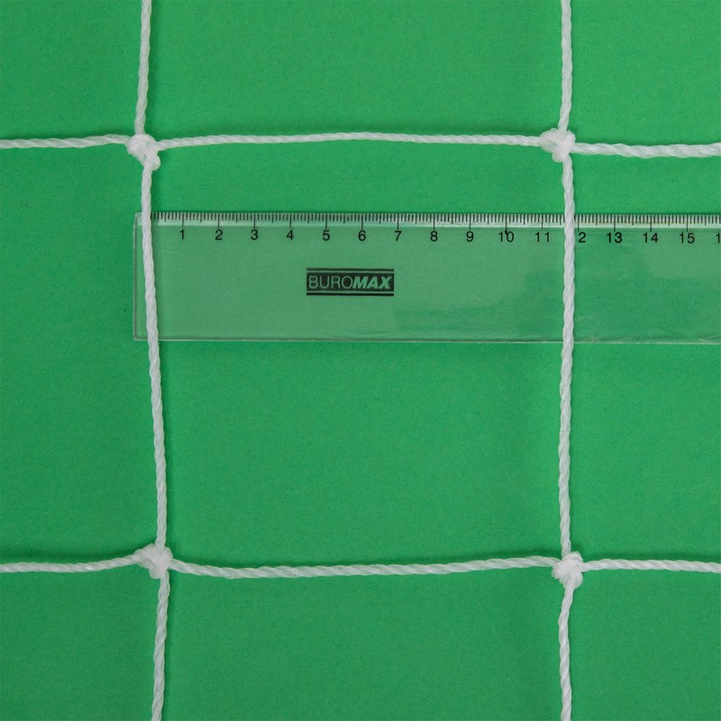 Сетка для футбольных ворот изготовлена из прочного и не восприимчивого к влаге материала — полипропилена. Полипропиленовый шнур не повреждает мяч и безопасен для игроков. Размер ячейки сетки CIMA составляет 12х12 см.