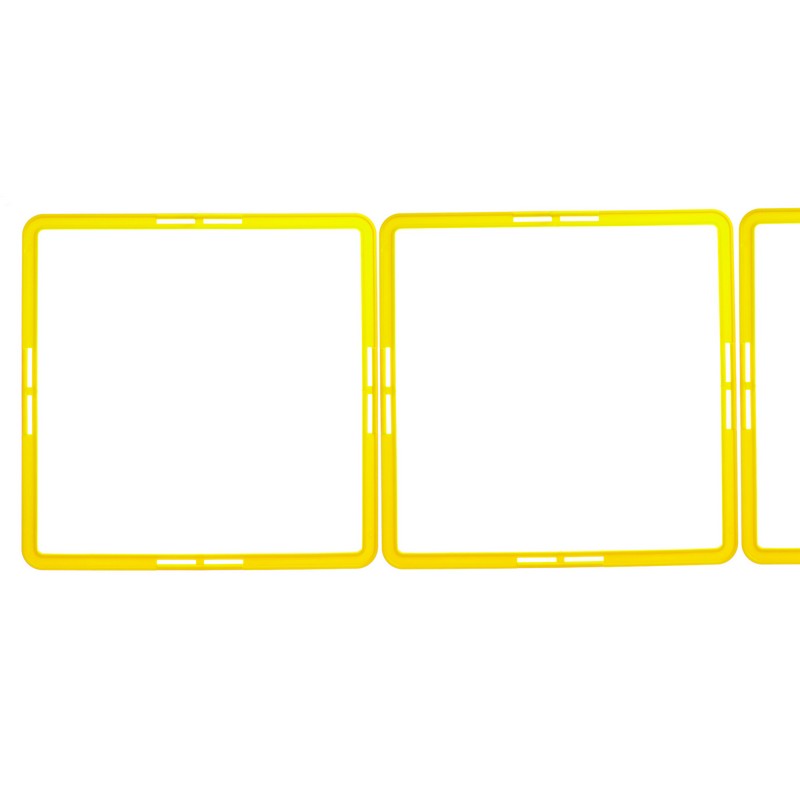 Это секция для сборки координационной сетки. Секция имеет квадратную форму, длина одной стороны составляет 42,5 см. Секция поставляется в количестве 1 штуки. При необходимости можно собрать сетку любой формы и размера. Также можно собрать из элементов квадратной формы координационную дорожку любой длины. Секция изготовлена из прочного пластика контрастного цвета, что позволяет спортсмену более комфортно преодолевать дистанцию и лучше видеть препятствия. Для соединения между собой в секциях имеются специальные отверстия, в которые устанавливаются пластиковые крепления.