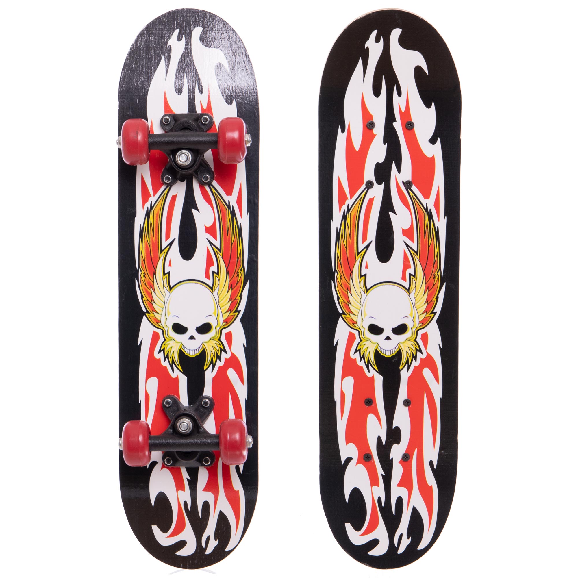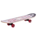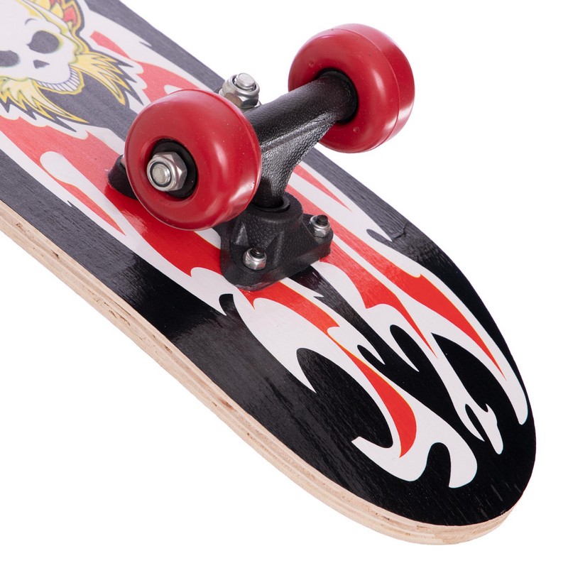 Колеса скейтборда изготовлены из поливинилхлорида. Специальная конструкция амортизирует удары от езды по неровной поверхности. Деревянная дека имеет стильный дизайн. В изделии использованы радиальные шариковые подшипники 608 ZB, они не требуют специального обслуживания.