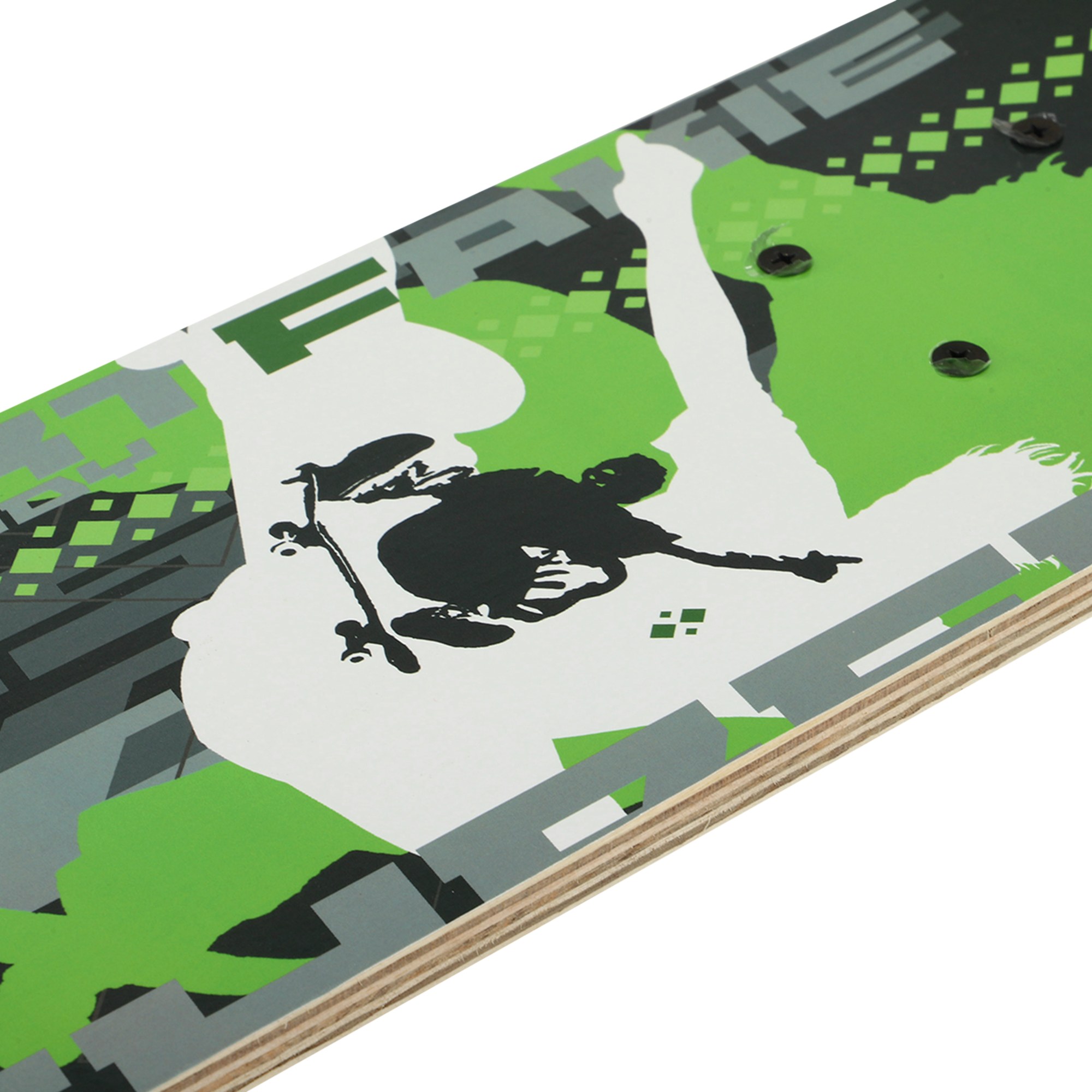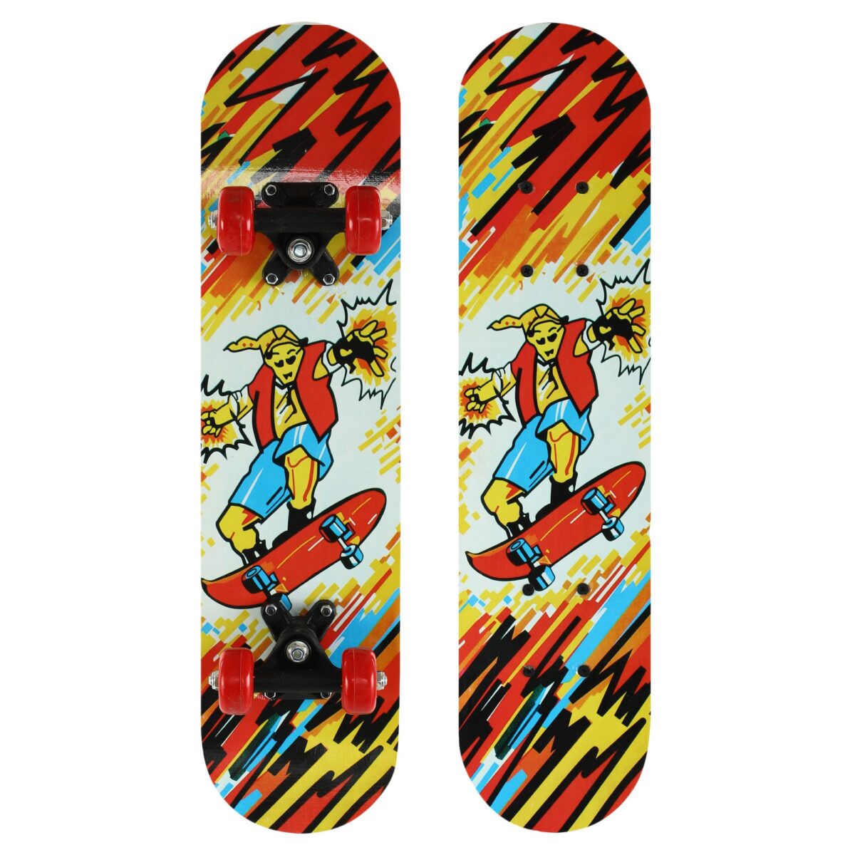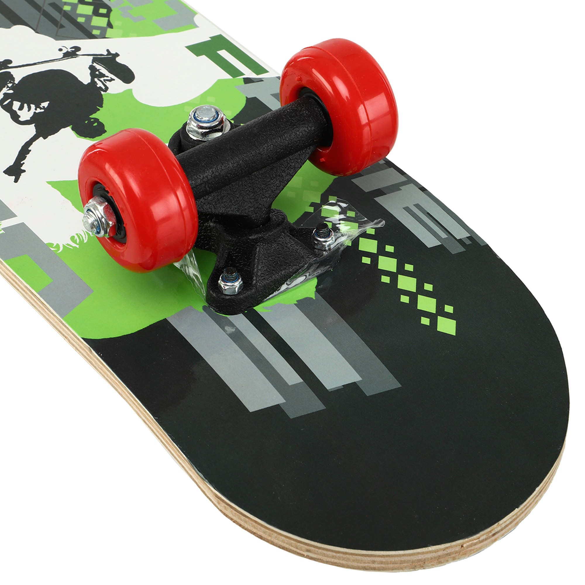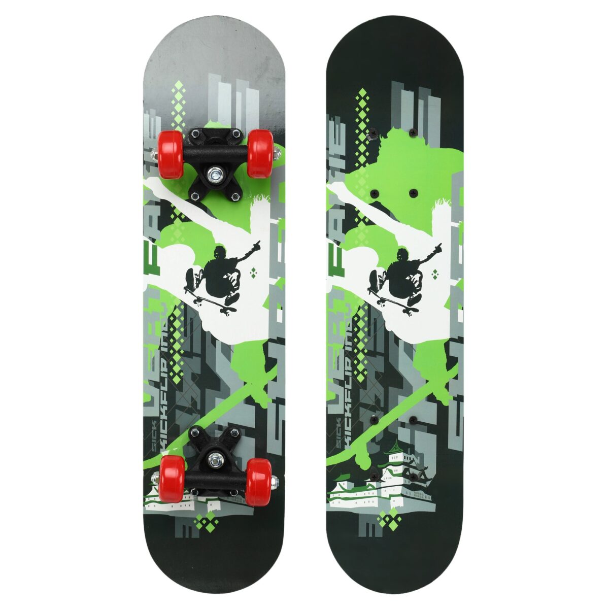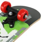 Колеса скейтборда изготовлены из поливинилхлорида (PVC) – материала, который обеспечивает плавное катание и отличное сцепление с поверхностью. Колеса в сочетании с подшипниками 608 ZB обеспечивают стабильный и уверенный ход, что делает этот скейтборд подходящим для выполнения как базовых, так и более сложных трюков.