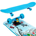 Дека изготовлена из прочного дерева толщиной 1 см. Она имеет яркий дизайн. Специальное покрытие на доске препятствует скольжению ног.