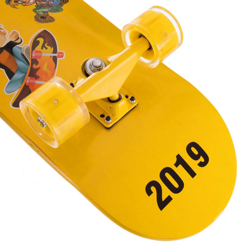 Доска изготовлена из дерева и покрыта сверху слоем материала, который препятствует скольжению ног. Колеса изготовлены из полиуретана, который амортизирует удары от езды по неровной поверхности. Во время езды колеса светятся.