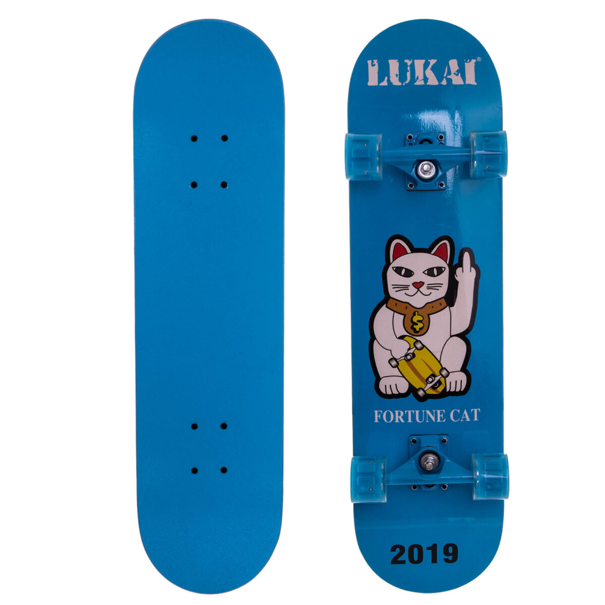 Скейтборд LUKAI подойдет для подростков и детей. Аксессуар имеет ограничение по максимальному весу пользователя — 75 кг. Скейтборд можно использовать для выполнения трюков и катания по городу.