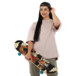 Скейтборд отлично подходит для выполнения трюков и прогулочных поездок. Дека изготовлена из прочного канадского клена, она имеет яркий дизайн.