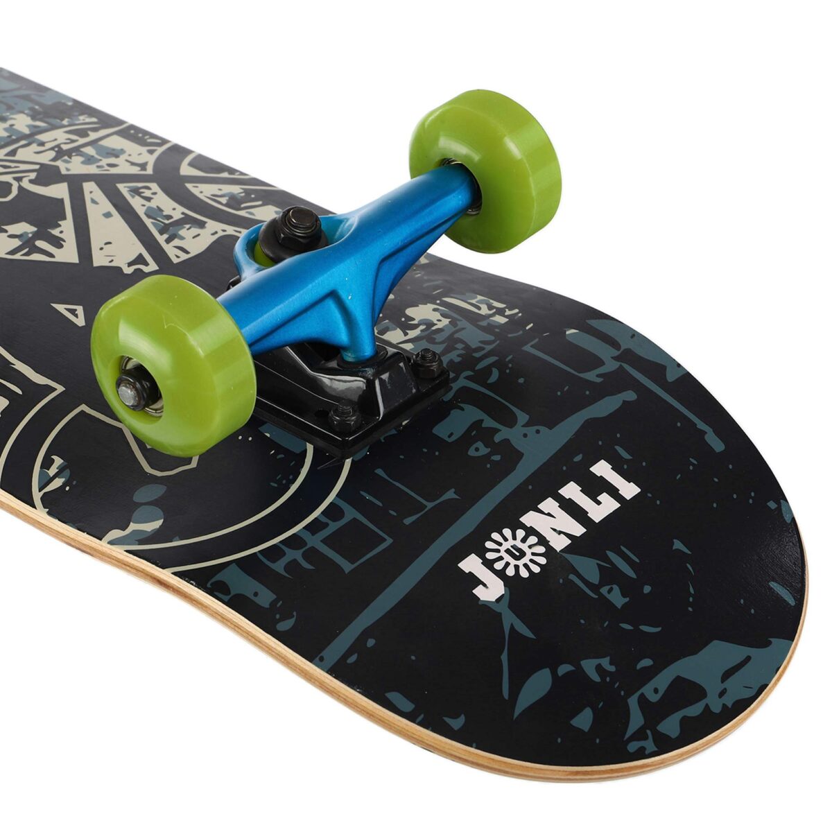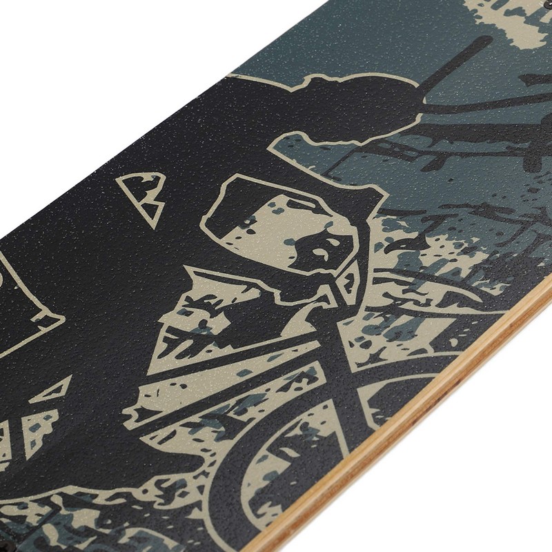 Длина доски составляет 80 см. Диаметр колес из полиуретана — 55 мм. Подшипники типа ABEC 9 обеспечивает практически бесшумное вращение колес. Это подшипники среднего уровня, которые могут использовать как начинающие, так и более опытные скейтбордисты. Им не требуется специальный уход.