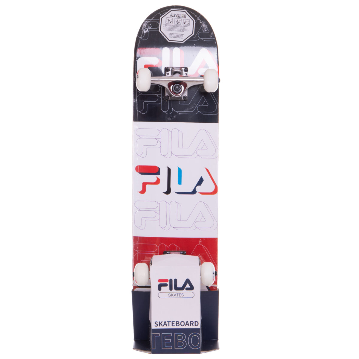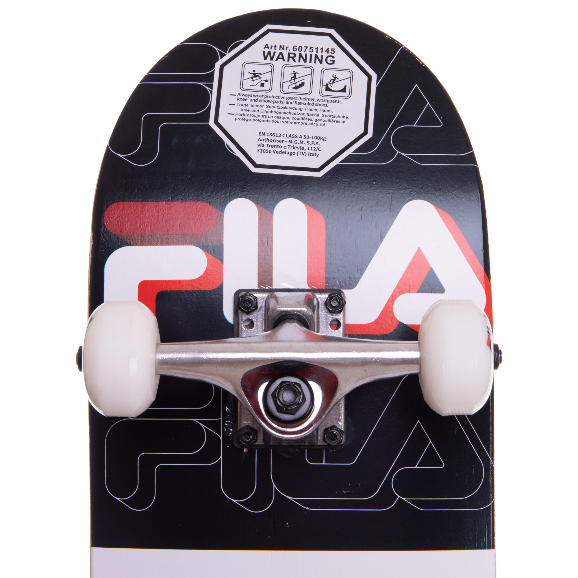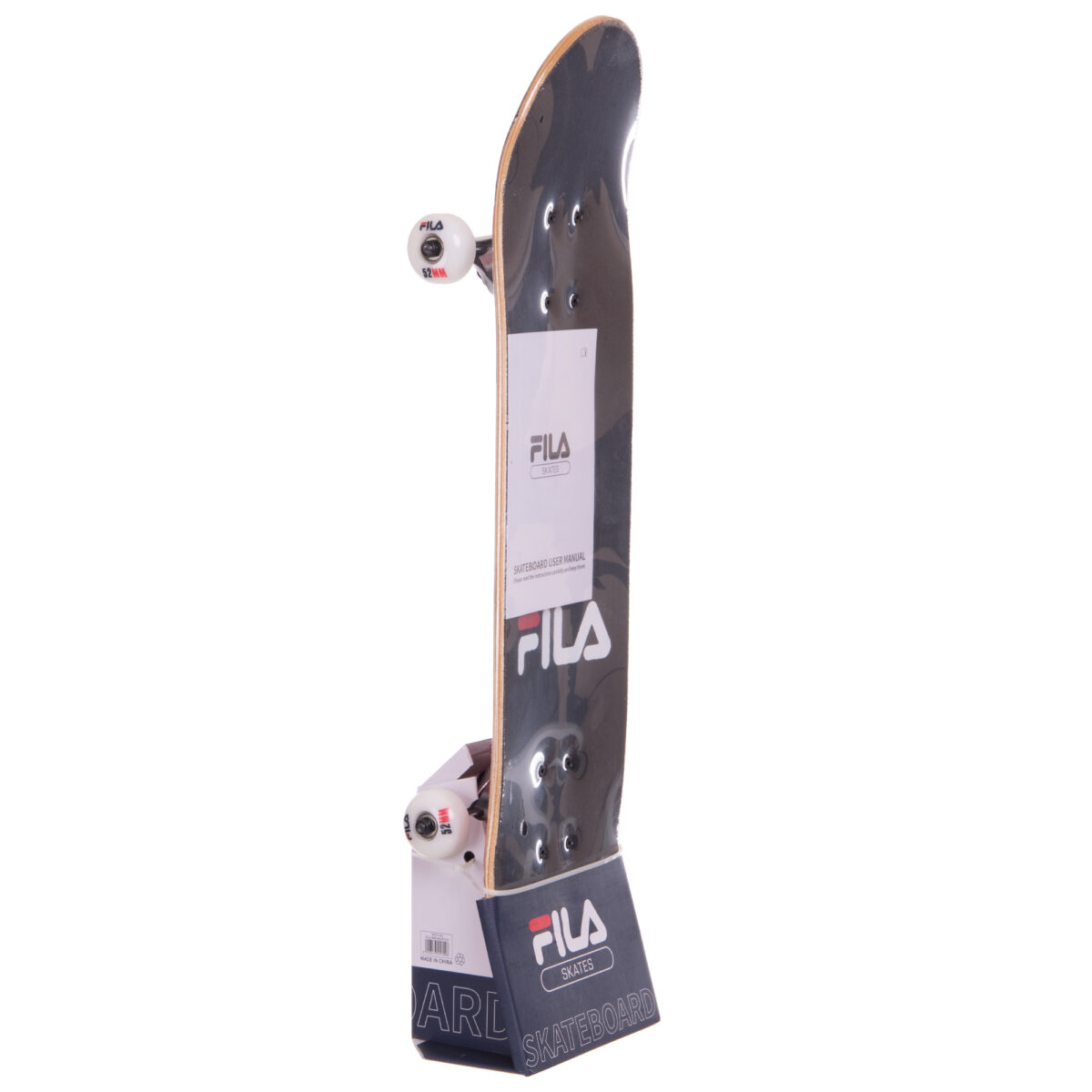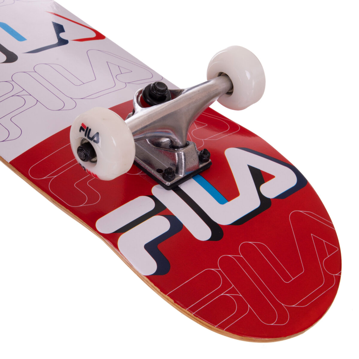 С обеих сторон деки нанесены логотипы FILA. Дизайн доски яркий, выполнен в цветах бренда.