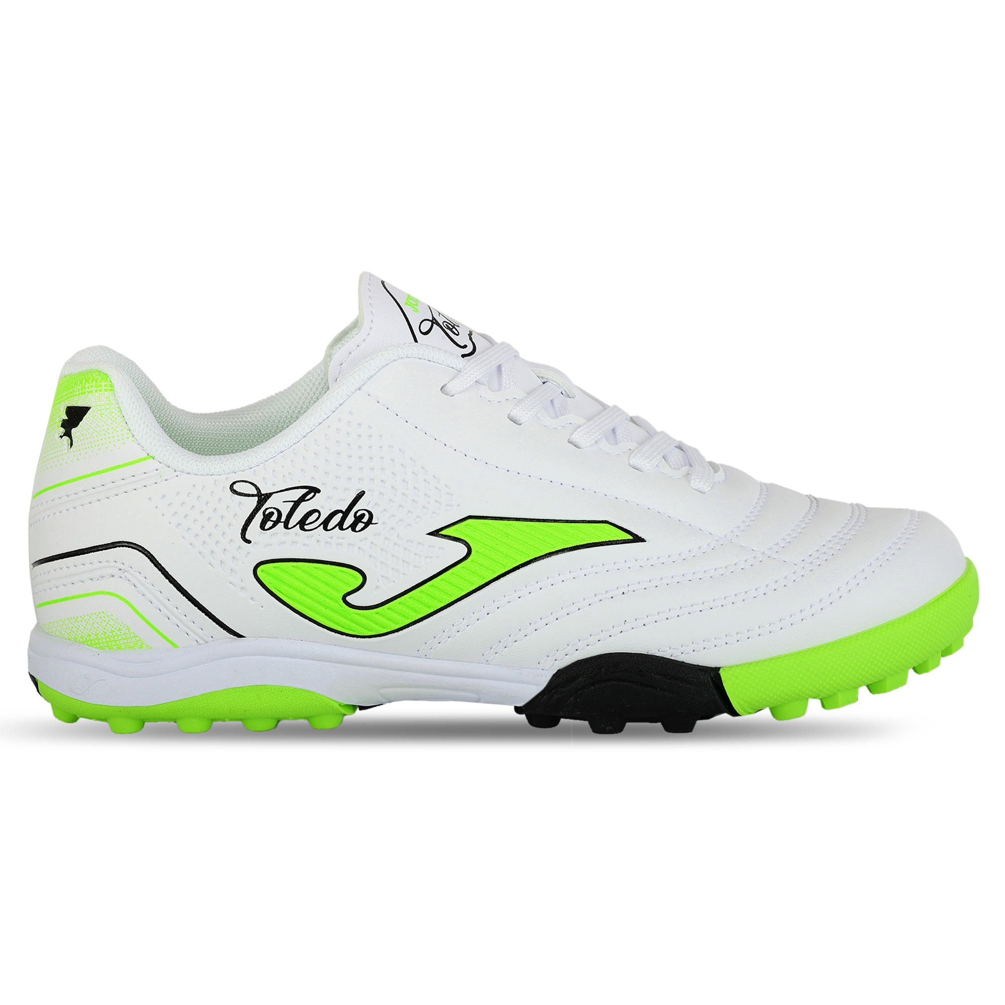Сороконожки Joma TOLEDO — обувь для игры в футбол на твердых поверхностях, разработанная специально для детей. Посадка обеспечивает плотную фиксацию и стабилизацию стопы. Для наилучшего сцепления на подошве расположены резиновые шипи, устойчивые к истиранию и износу. Верх сороконожек изготовлен из искусственной кожи, благодаря чему обувь очень гибкая и комфортная. Мелкая перфорация способствует постоянной циркуляции воздуха и предотвращает перегрев стопы. Носок специально усилен, он защищает пальцы ног от повреждений, позволяя игроку выполнять мощные удары без страха. Амортизирующая способность обуви позволяет снизить нагрузку на суставы.