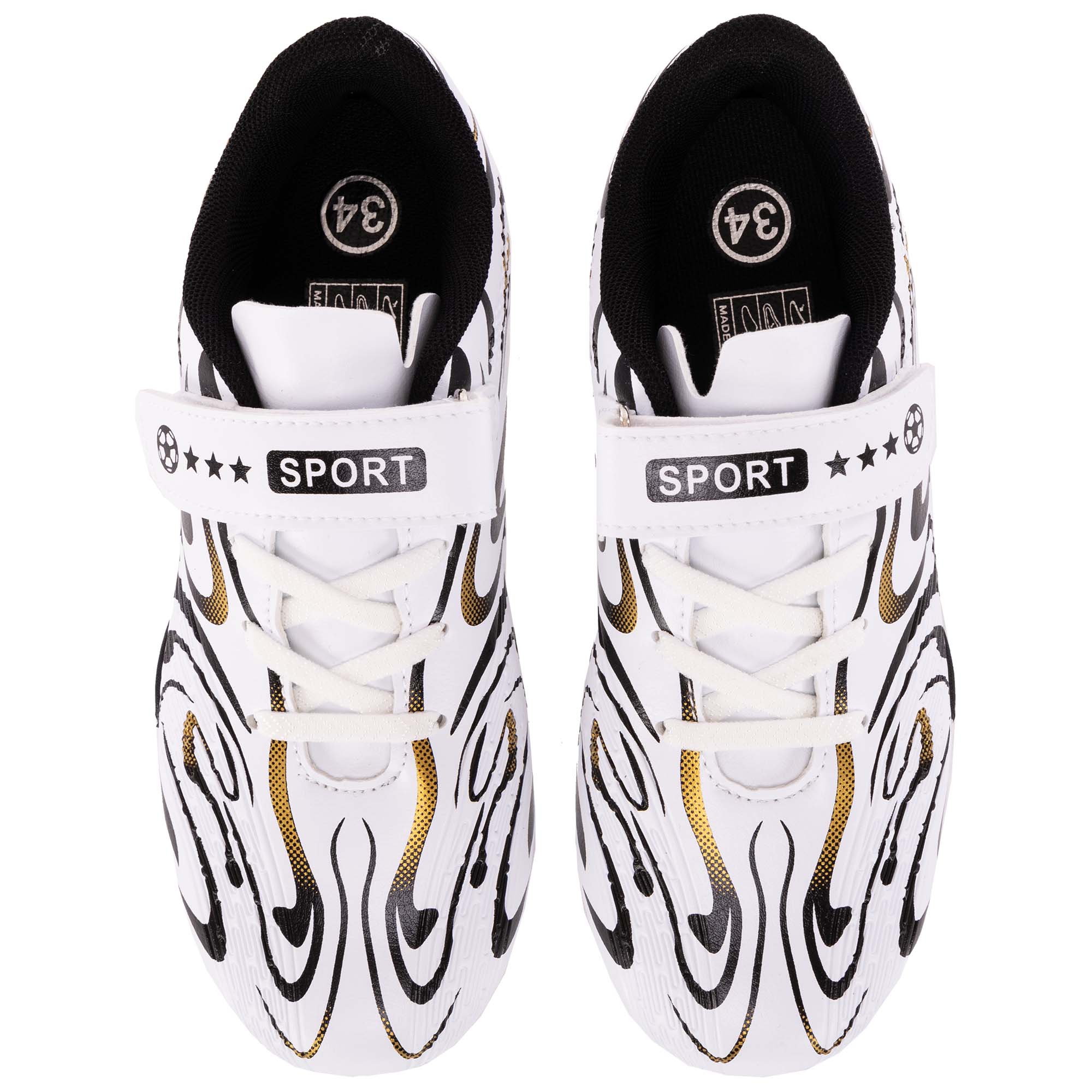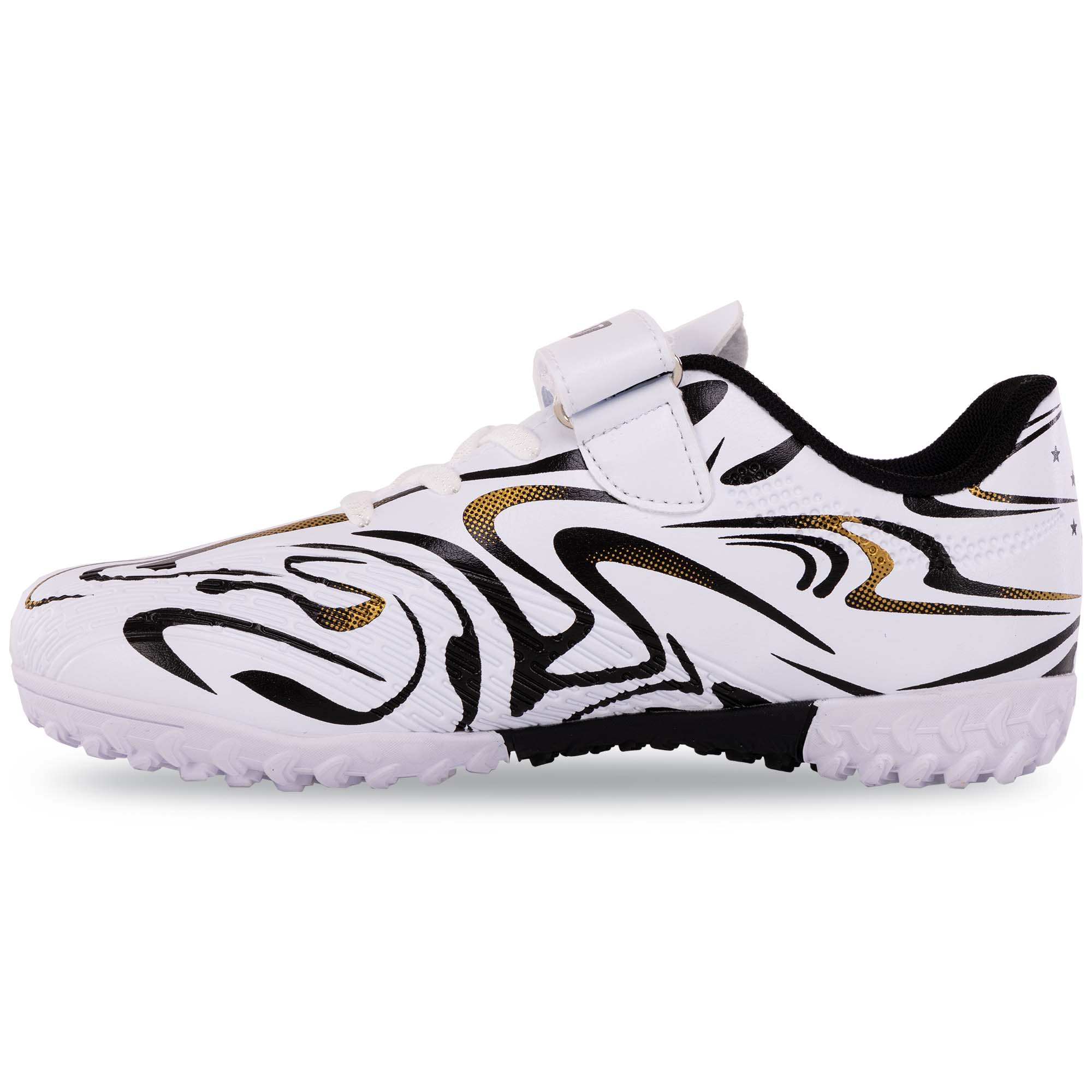 Детские сороконожки имеют привлекательный дизайн, который придётся по вкусу любому ребёнку. Обувь изготовлена из высококачественных материалов. Полиуретановый верх с особым рисунком на поверхности способствует контролю мяча и защите от случайных ударов. Шнуровка позволяет точно подогнать обувь по посадке, а липучка надёжно фиксирует её. Пятка в обуви надёжно зафиксирована и не «гуляет». Внутри обувь отделана материалом, который эффективно отводит влагу.