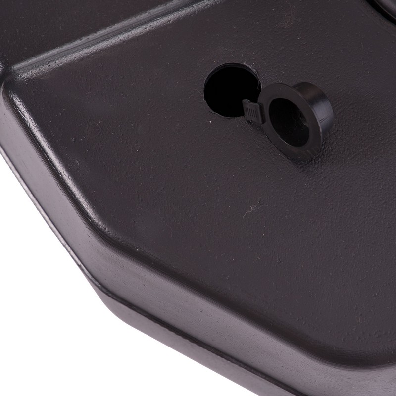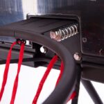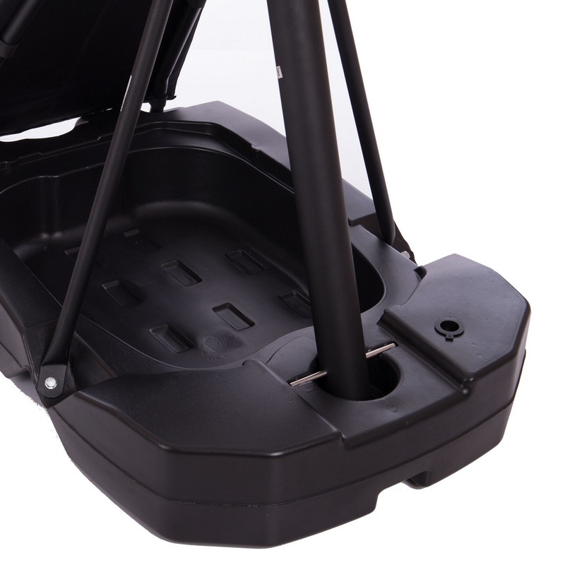 Щит размером 110×75 см выполнен из прочных материалов. На щитке закреплено кольцо диаметром 45 см, изготовленное из стальной трубы. Кольцо укомплектовано нейлоновой сеткой. Для обеспечения устойчивости конструкции в нижней части стойки предусмотрена ёмкость для воды. Вода утяжеляет конструкцию, гарантируя её стабильное положение в пространстве.