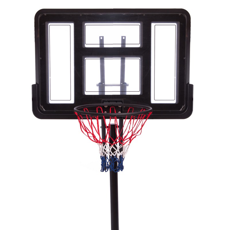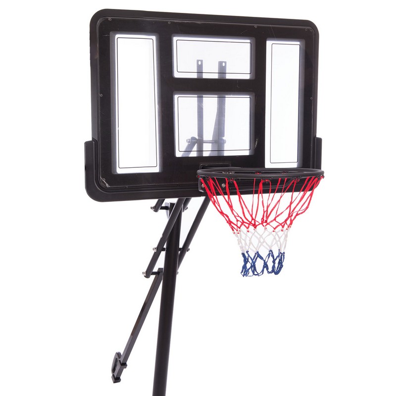 Мобильная баскетбольная стойка подходит для использования как на улице, так и в помещении. Этот спортивный инвентарь можно применять для тренировок баскетбольных команд и индивидуальных занятий. Высота стойки регулируется в пределах 245–305 см, что позволяет использовать её игрокам разного возраста.