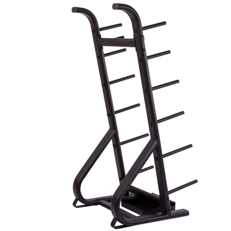 Использовать вертикальную стойку для хранения спортивного инвентаря чрезвычайно удобно. Она занимает немного места, но вмещает достаточно большое количество инвентаря. Небольшой диаметр штырей для дисков позволяет использовать подставку для хранения комплектующих как к олимпийскому грифу, так и к неолимпийскому.