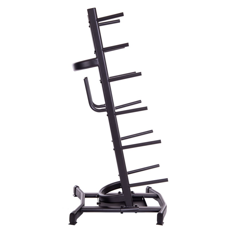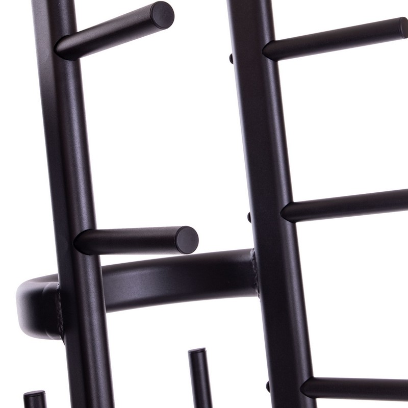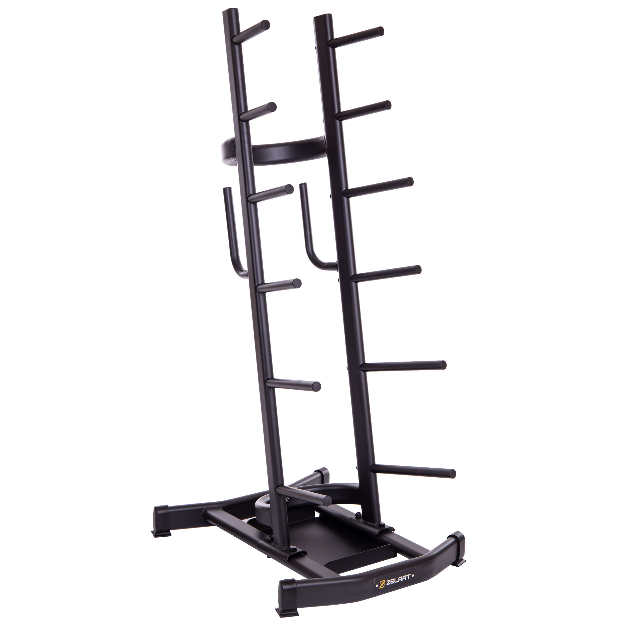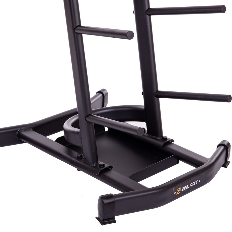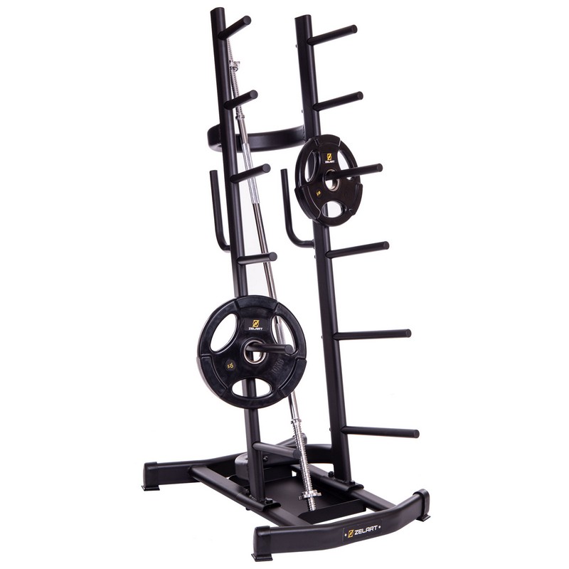 Вертикальная стойка для тренировочного оборудования от бренда Zelart — это специализированное оборудование для тренажерных залов и фитнес-клубов. Прочная металлическая рама с усиленной основой выдерживает большие нагрузки и позволяет организовать удобное и безопасное хранение дисков, грифов и бодибаров. Для ее изготовления используется высокопрочный металл со специальным антикоррозийным покрытием. С одной стороны стойка оборудована металлическими штырями для размещения дисков различного веса. С другой стороны — полукруглые перекладины, позволяющие зафиксировать грифы, а также держатели для бодибаров. Чтобы грифы не скользили, внизу стойки расположен специальный лоток с высоким бортиком, выполняющий роль стопора. Конструкция разработана специально для компактного хранения с быстрым доступом к любому из снарядов. Она не занимает много места и обладает высокой устойчивостью.
