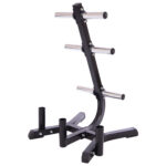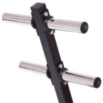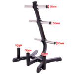 Вертикальная стойка для хранения дисков и грифов позволяет значительно сэкономить место в зале. На ограниченной площади можно разместить 3 грифа и полный комплект дисков, создавая порядок в помещении. Это решение подходит как для частных спортзалов, так и для коммерческих спортивных клубов. Прочная металлическая конструкция стойки гарантирует долгий срок службы.