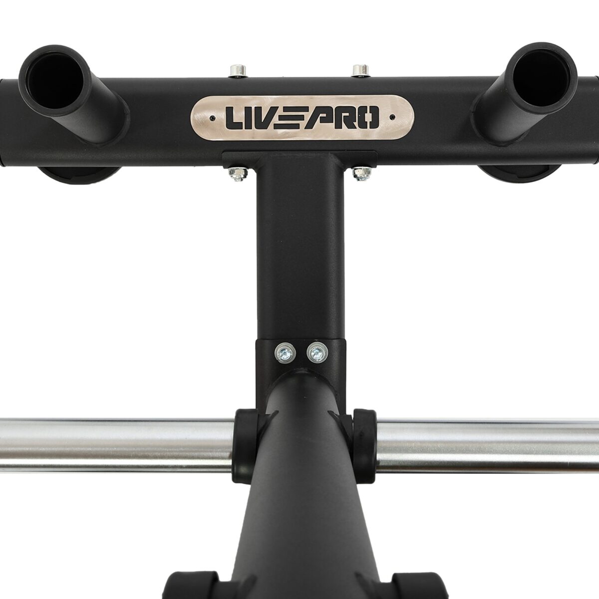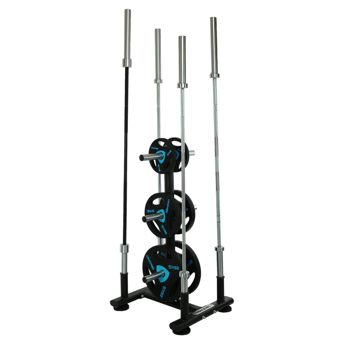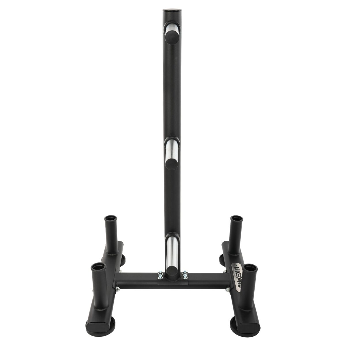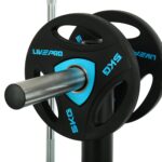 Передвижная стойка от LiveUp предназначена для хранения олимпийских дисков и грифов. Посадочные места для дисков и штанги подогнаны под размер именно этого типа инвентаря.
