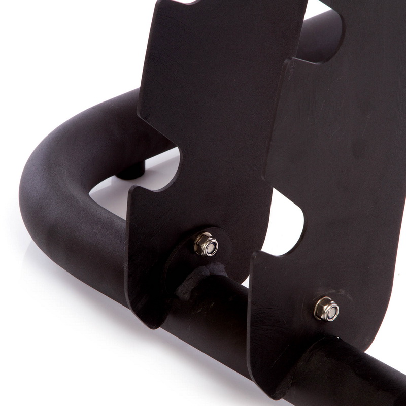 В профиле вырезаны пазы под гантели. Их форма и размер позволяют без труда снимать и ставить на место гантели, но исключают их случайное падение.