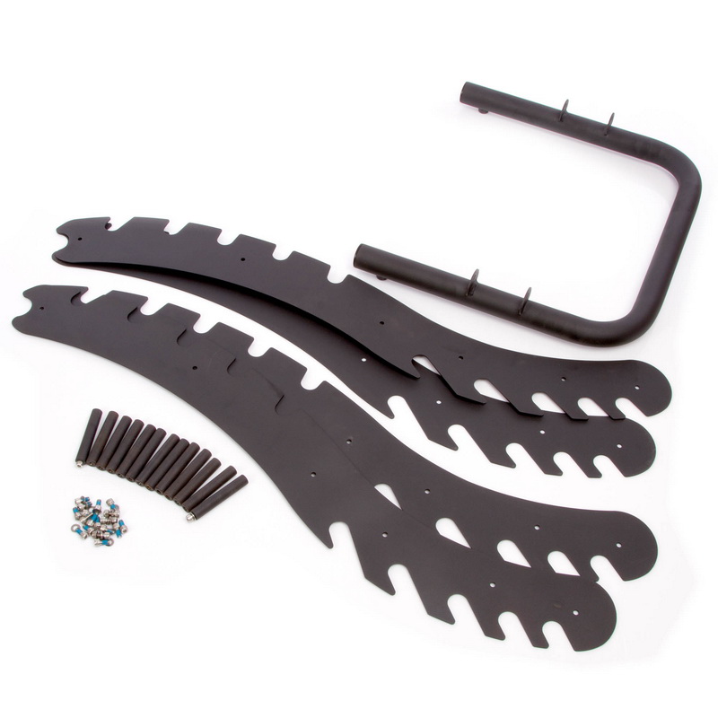 Основание стойки выполнено из металлической трубы в П-образной форме. Это придает конструкции еще большую стабильность и устойчивость. X-образная стойка прикручивается к основанию, и при необходимости, например, для перевозки, конструкцию можно разобрать.