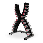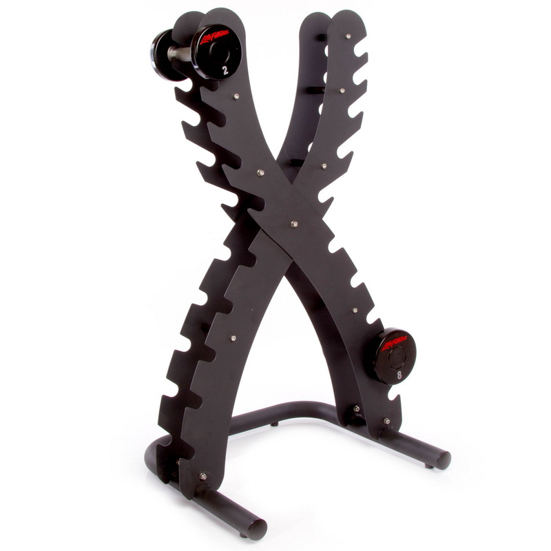 Вертикальная стойка — это конструкция, которая позволит хранить на минимальной площади сразу 10 пар гантелей. Использовать стойку можно как в домашних условиях, так и в коммерческом тренажерном зале.