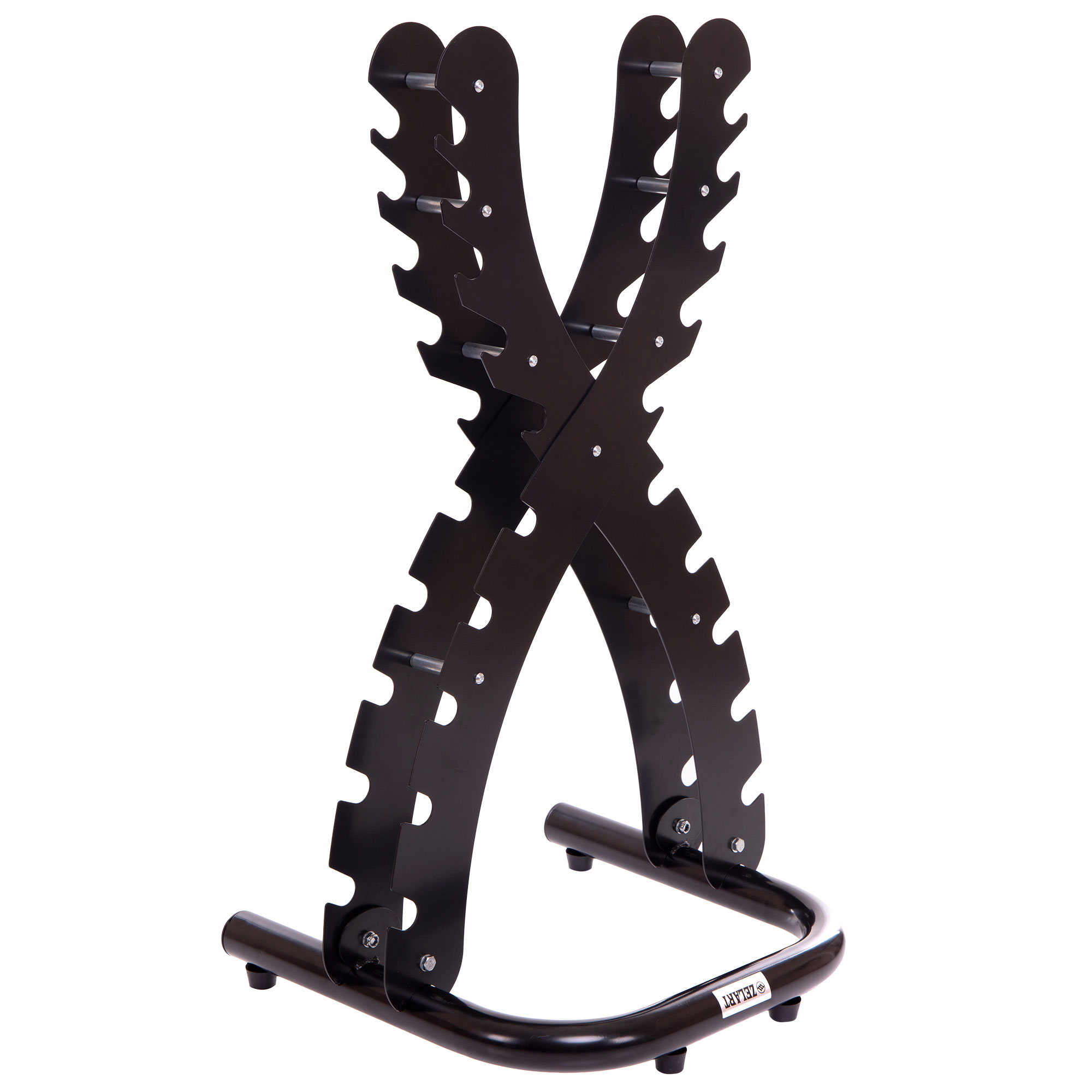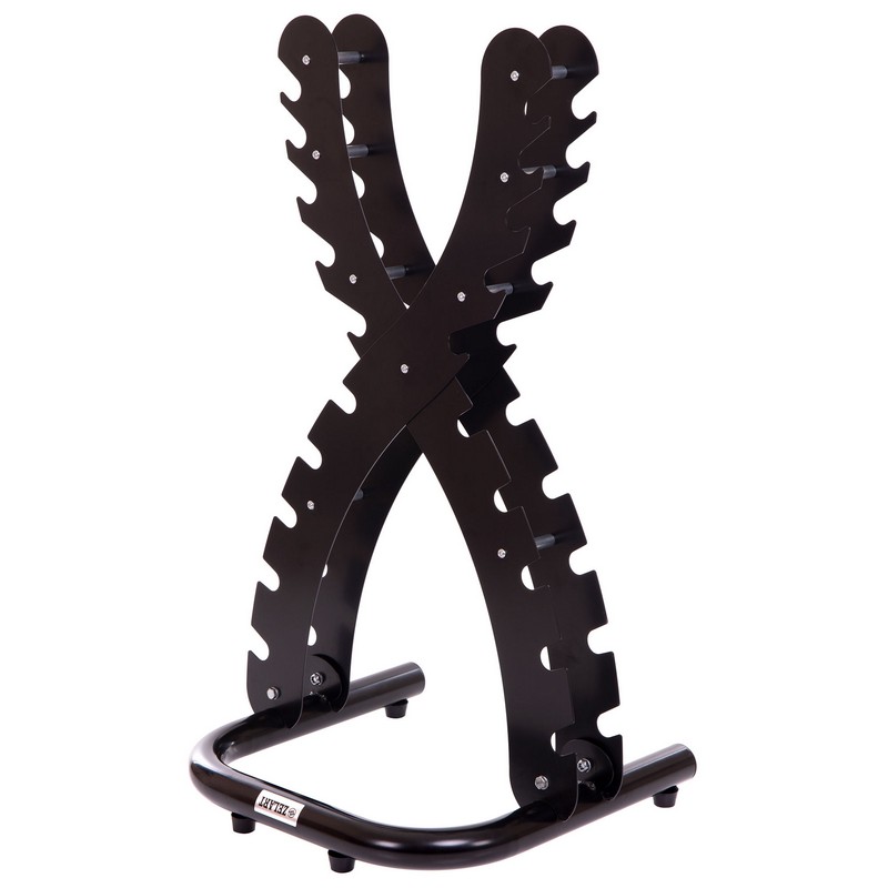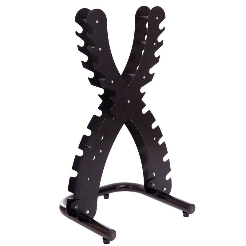 Вертикальная стойка для хранения гантелей — это продуманная и стильная конструкция с привлекательным дизайном. Она легко впишется в любой интерьер и позволит, занимая минимум пространства в зале, хранить сразу 10 пар гантелей. Использовать стойку можно для цельных и разборных гантелей.