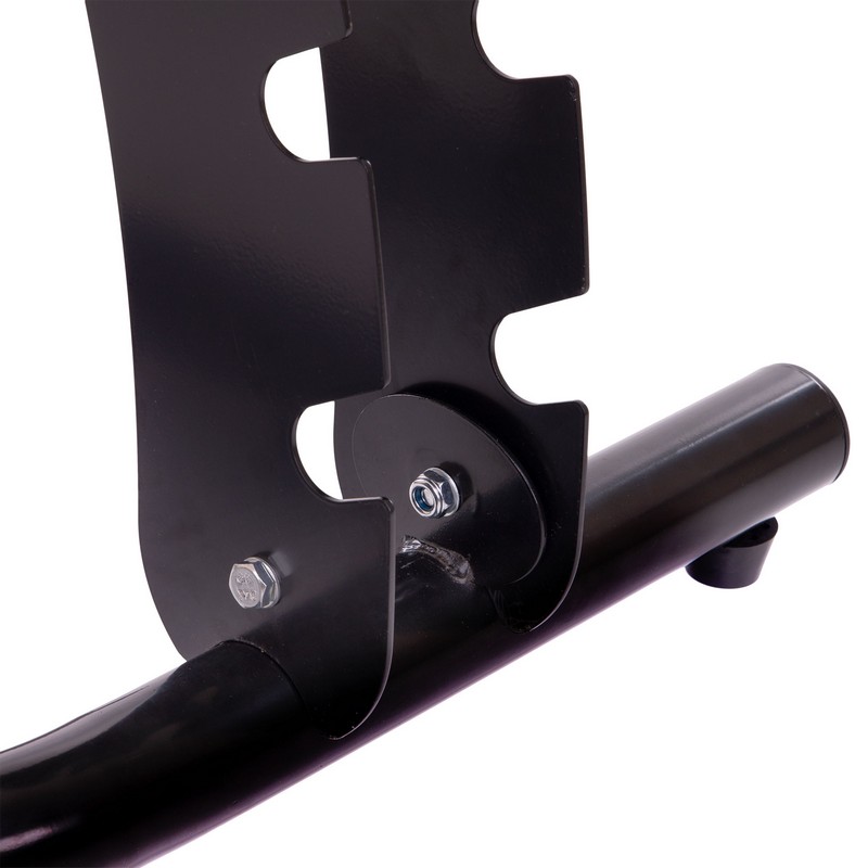 Использовать металлическую стойку можно для хранения гантелей любого веса и размера. Пользователь получает полный доступ к каждой гантели, а конструкция сохраняет устойчивость даже при неравномерной загрузке инвентарем. Это незаменимое решение для зала.