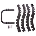 В нижней части профили соединяются с помощью трубы, что обеспечивает стабильность конструкции и повышает ее прочность. На трубе имеются резиновые накладки, которые предотвращают повреждение напольного покрытия.