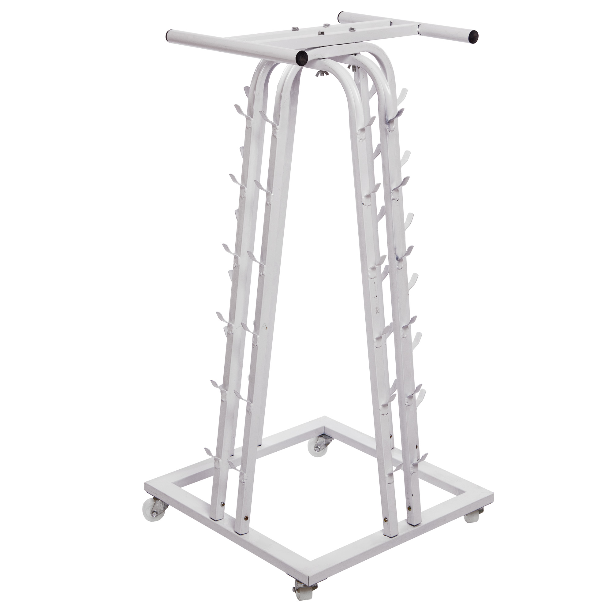 Вертикальная четырехсторонняя стойка — это удобный и практичный аксессуар для тренажерного зала с небольшой площадью помещения. Вертикальная конструкция занимает мало места, а ее вместительность обеспечивается высотой. В данном случае высота составляет 102 см.