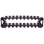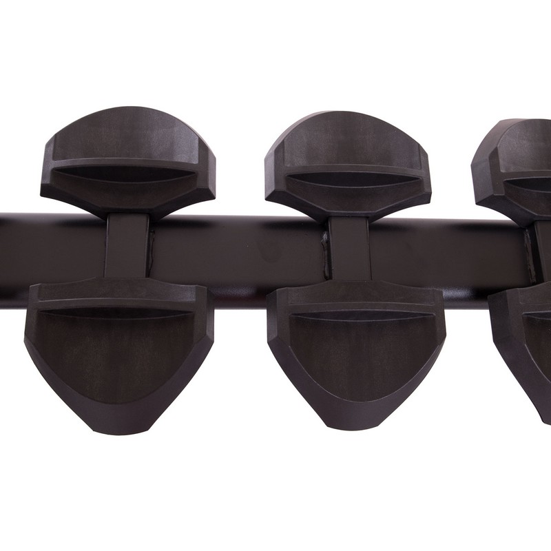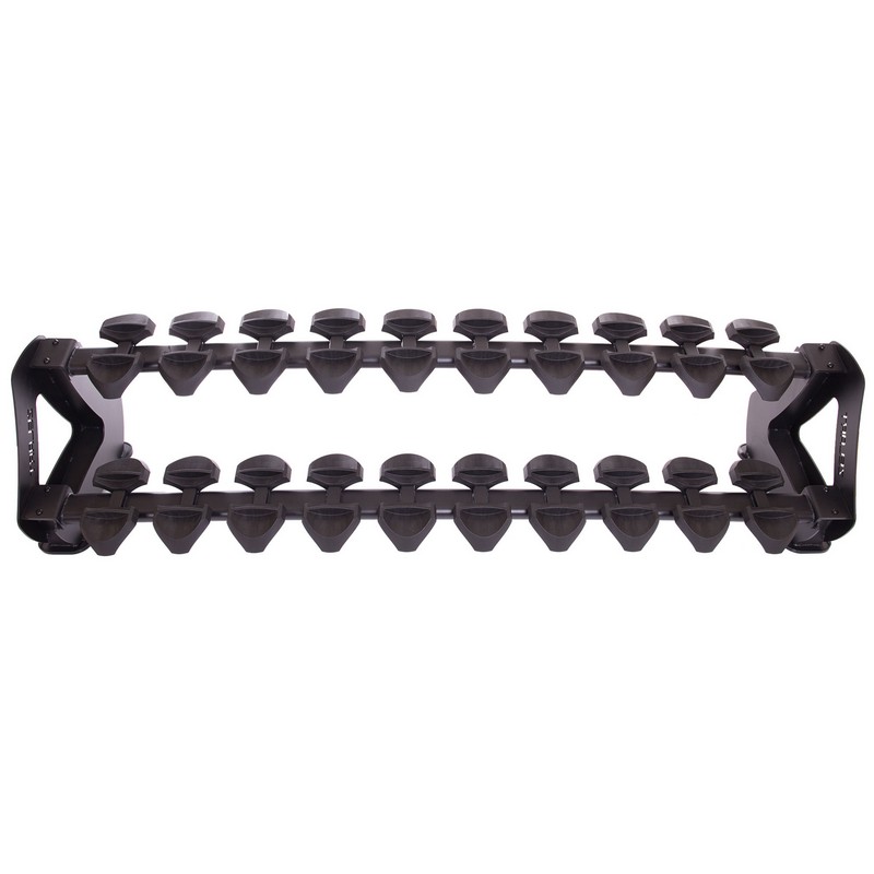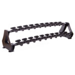 Горизонтальная стойка для хранения гантелей рассчитана на 10 пар инвентаря. Гантели на подставке размещаются в 2 ряда: один ряд располагается сверху, а другой – немного ниже. Все гантели находятся в поле зрения пользователя и не закрывают доступ друг к другу.