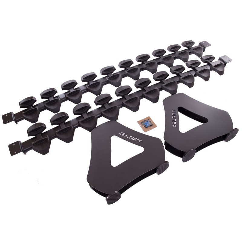 Подставка предназначена для хранения гантелей. Её можно использовать как для цельных гантелей разного веса, так и для разборных. Она удобна тем, что пользователь имеет полный доступ ко всему инвентарю и хороший его обзор. Это позволяет быстро найти подходящий по весу инвентарь.