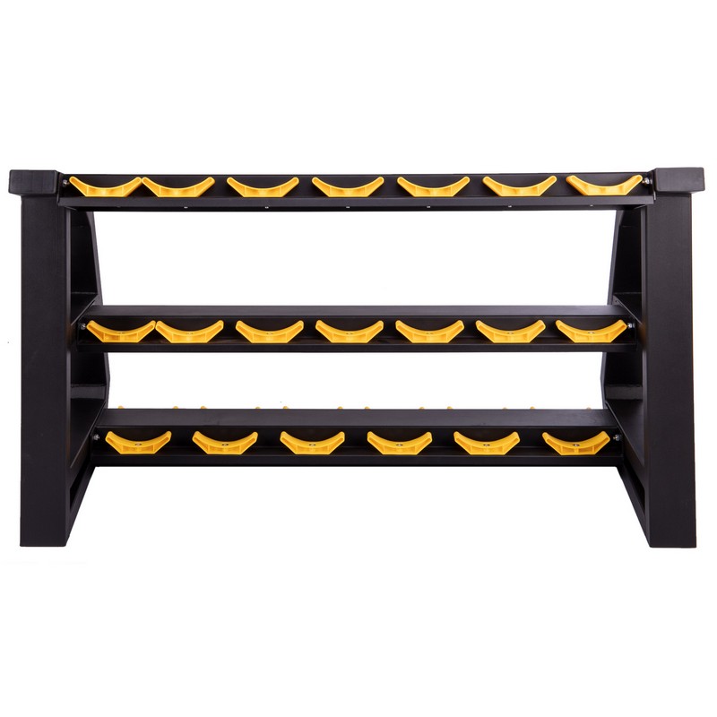 Стойка горизонтальная для гантелей трехъярусная на 10 пар размер-88x75x145см черный