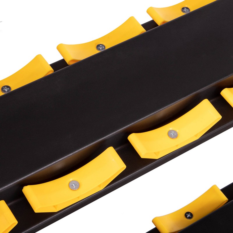 Стойка для гантелей LI NUO — это профессиональное оборудование для хранения тренировочного инвентаря, которое позволяет удобно и безопасно расположить до 10 пар гантелей. Устойчивая металлическая рама с надежными опорами обладает высокой прочностью, позволяющей выдерживать нагрузку от тяжелого инвентаря. Горизонтальные гантельные ряды расположены в три яруса и оборудованы удобными и безопасными ложементами. Для каждой гантели предусмотрены вкладки, эффективно удерживающие снаряды на месте и предоставляющие удобный доступ к ним. Конструкция исключает возможность падения и повреждений оборудования.
