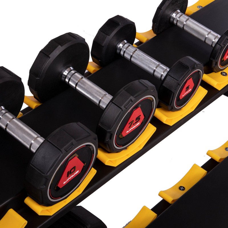 • Для каждой гантели предусмотрено место со специальными вкладками.
