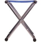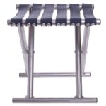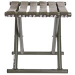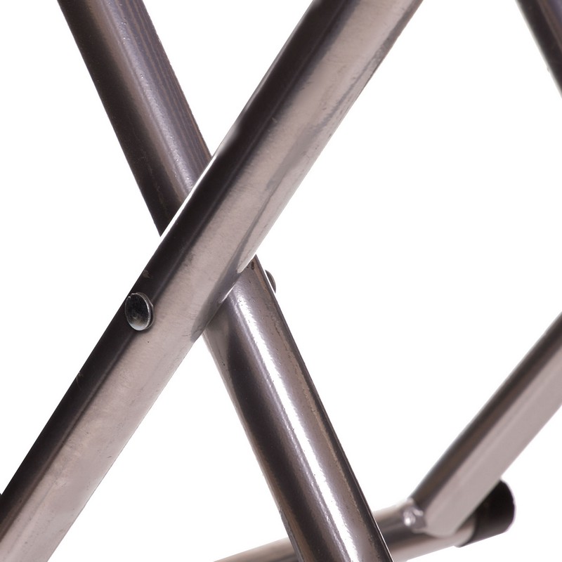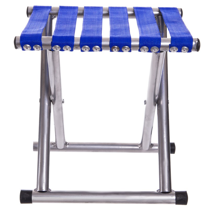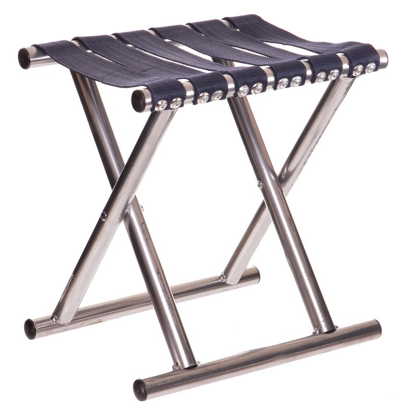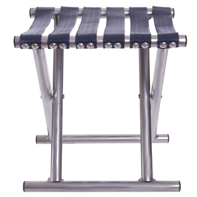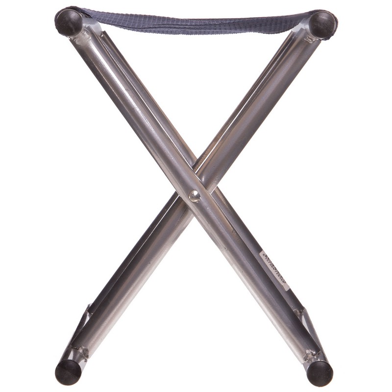 Стул складной без спинки имеет простую конструкцию, что облегчает его использование и транспортировку. Аксессуар для отдыха на природе изготовлен из прочного и легкого метала.