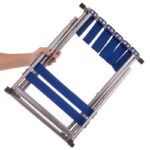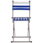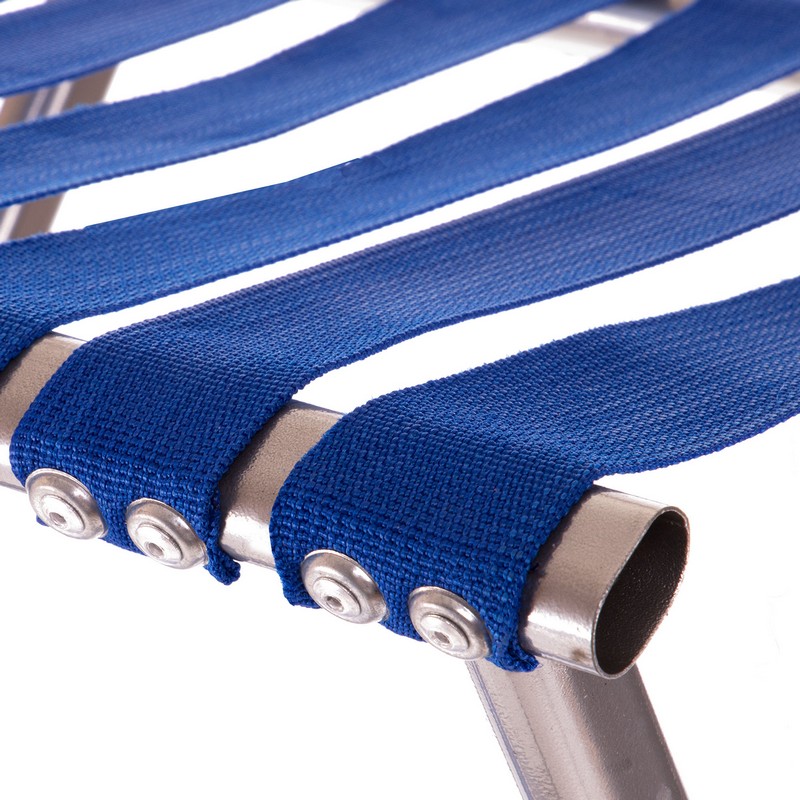 Рама стула изготовлена из прочного и легкого металла. Сидушка и спинка изготовлены из прочного полиэстера. Полиэстер натянут на раму и зафиксирован с помощью заклепок. Аксессуар выдерживает нагрузку до 100 кг.