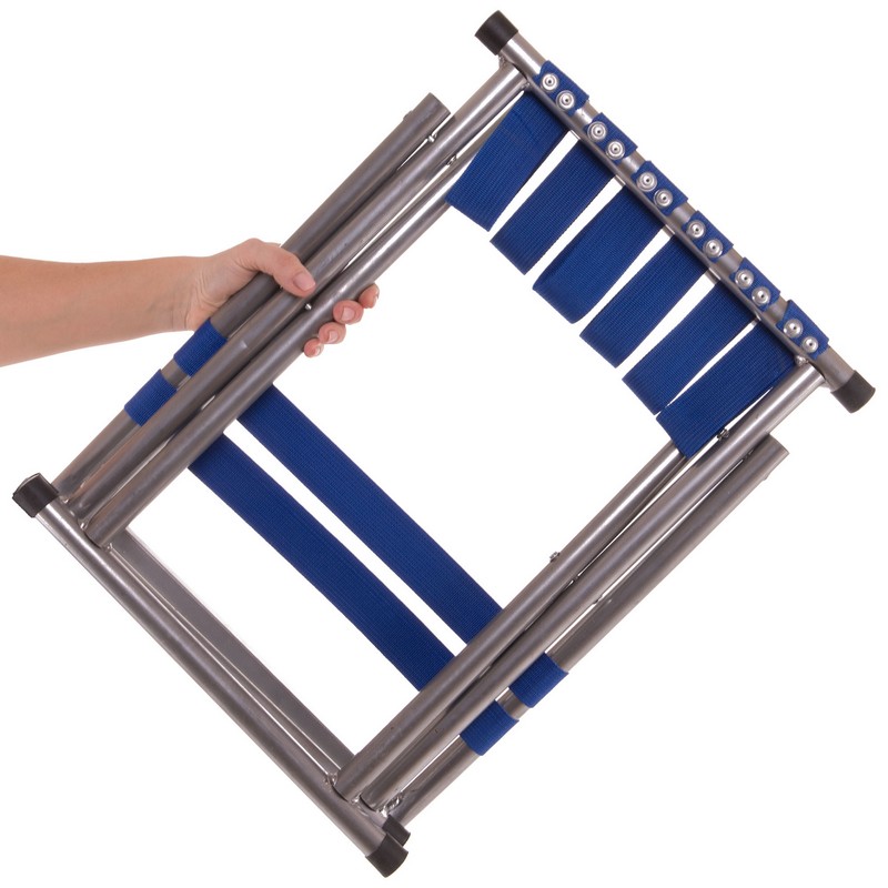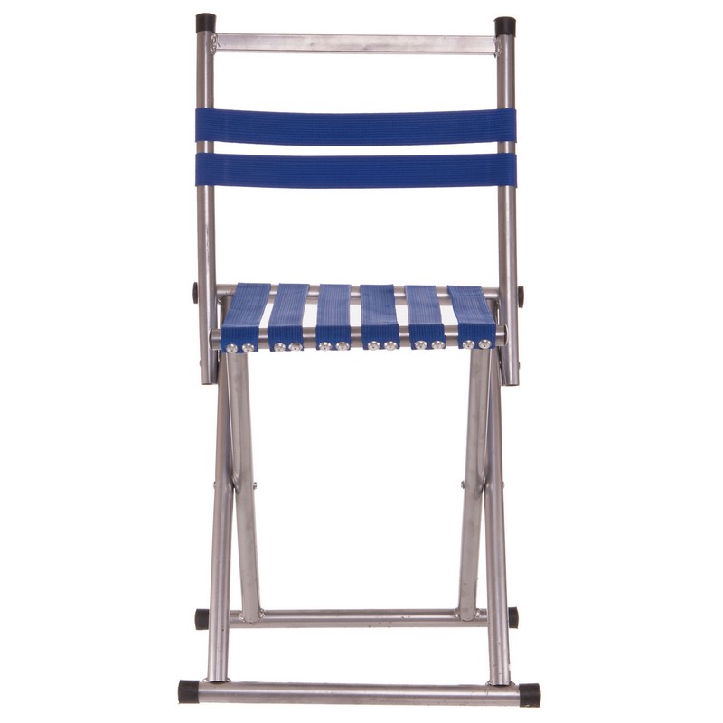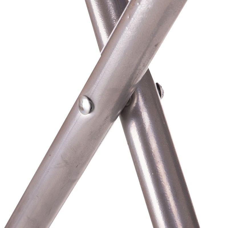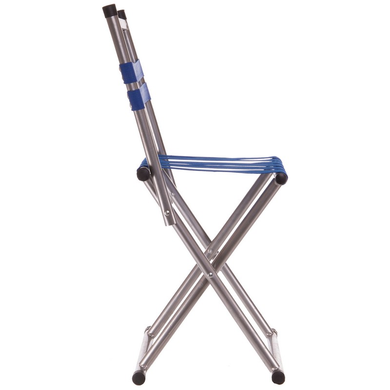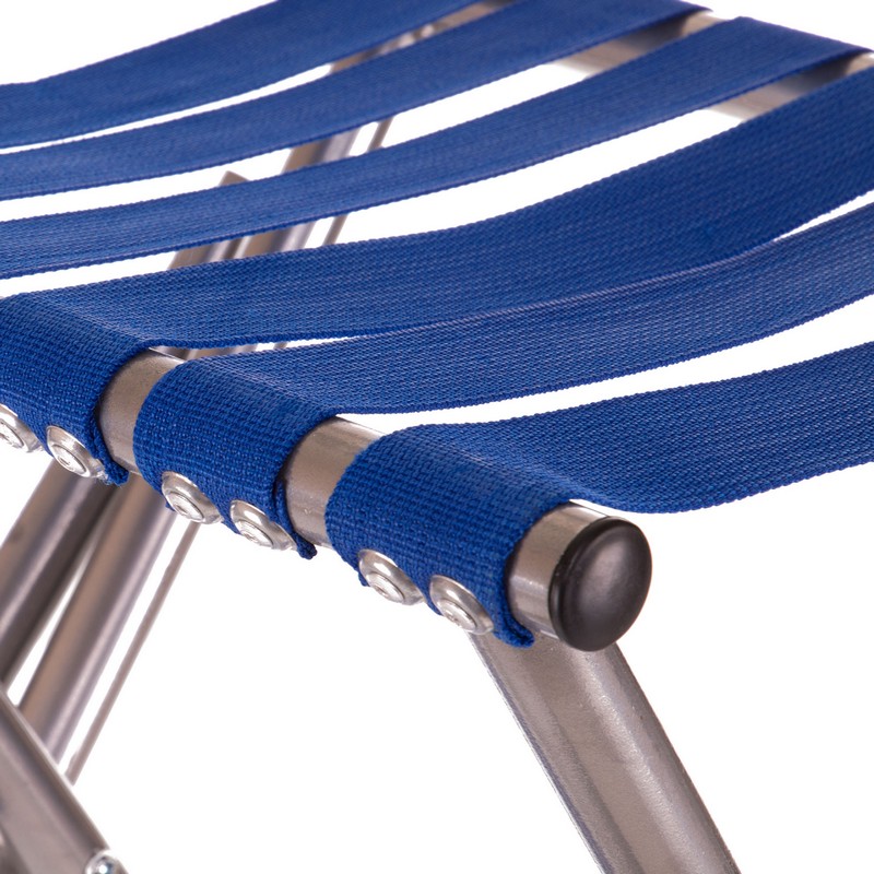 Рама стула изготовлена из прочного и легкого металла. Сидушка и спинка изготовлены из прочного полиэстера. Полиэстер натянут на раму и зафиксирован с помощью заклепок. Аксессуар выдерживает нагрузку до 100 кг.