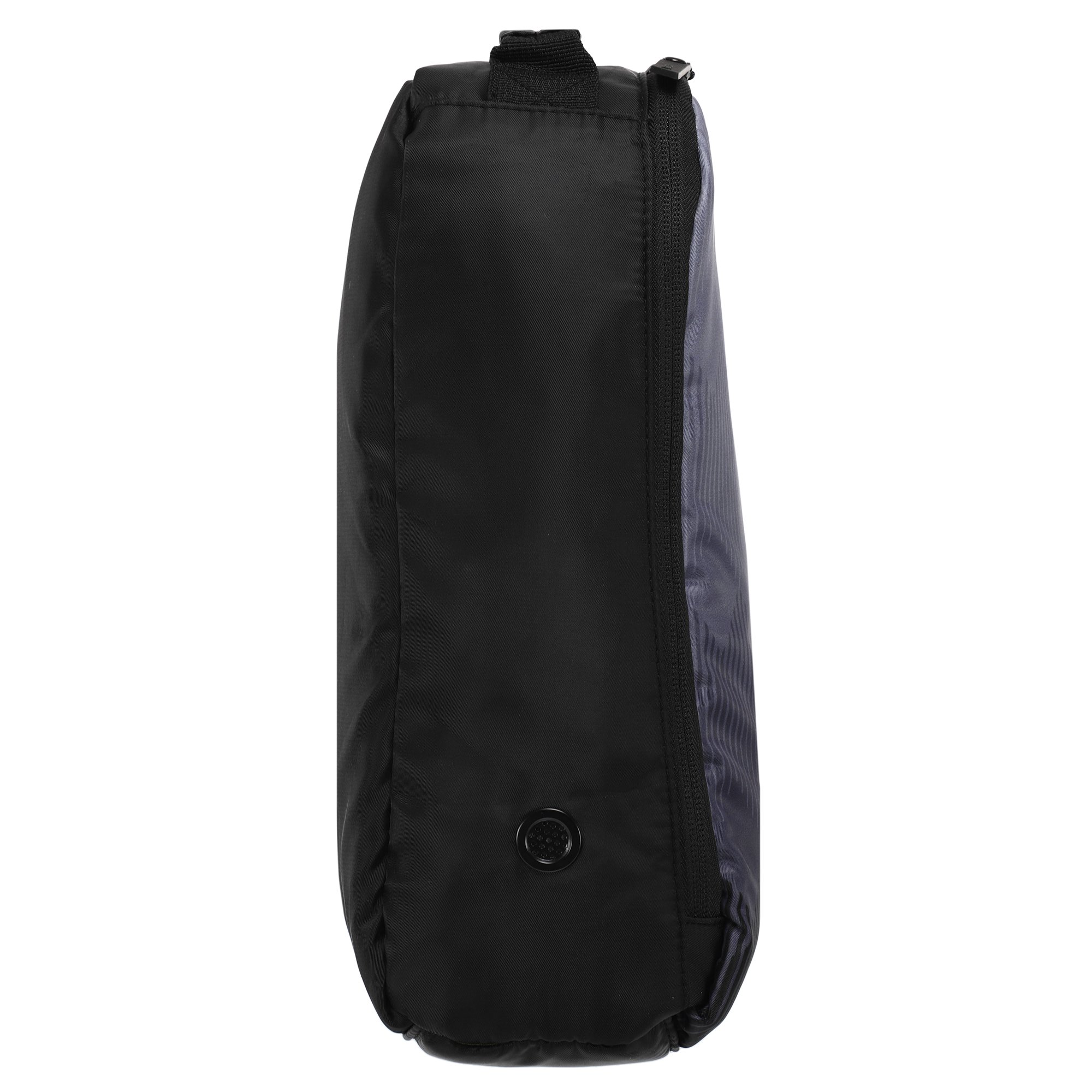 На боковых панелях сумки расположены воздуховыпускные отверстия, которые позволяют сохранять свежесть обуви долгое время. Прочный материал сумки гарантирует износостойкость изделия, а надежная ручка — удобство в использовании.