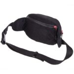 Сумка изготовлена из полиэстера. Синтетический материал прочный, не промокает и не пачкается. Чтобы в теплое время года сумка не перегревает тело. Сторона, которая прилегает к поясу изготовлена из сетчатого материала.
