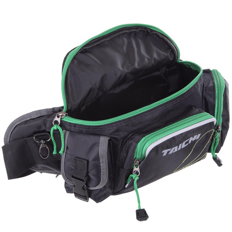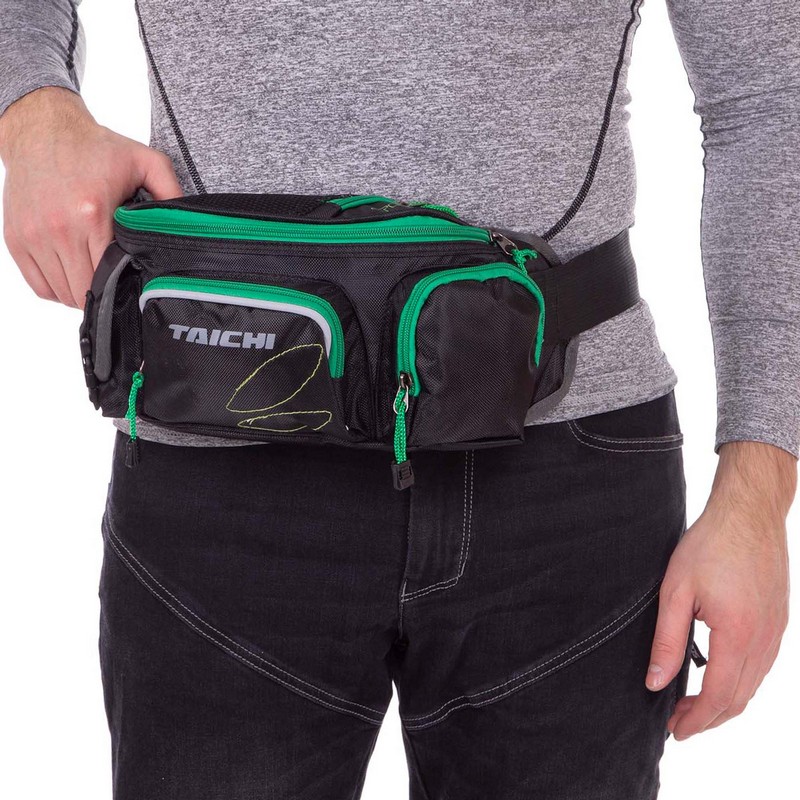 Поясная сумка разделена на множество отделений, который позволяют удобно организовать все личные вещи. Аксессуар можно использовать для катания на велосипеде и мотоцикле, занятий спортом и носить каждый день. Общий объем сумки 5 л.