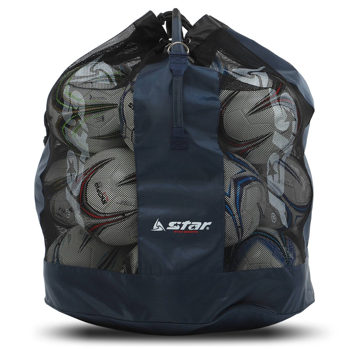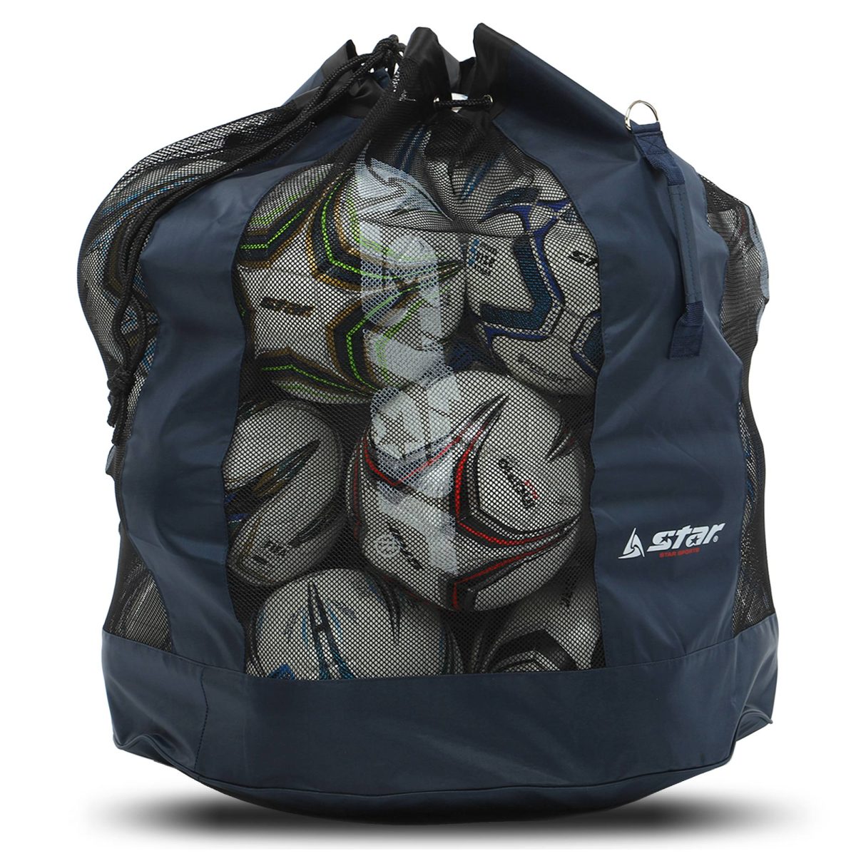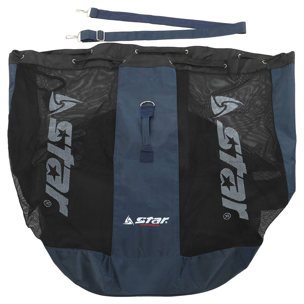 Размер отверстия для загрузки мячей можно регулировать с помощью стяжки. В сумку от бренда STAR можно собирать мячи после завершения тренировки. Если в процессе используется более 10 мячей, то гораздо удобнее собрать их в сумку на поле, чем носить к корзине каждый мяч отдельно.