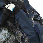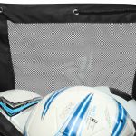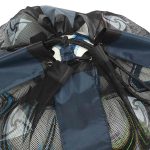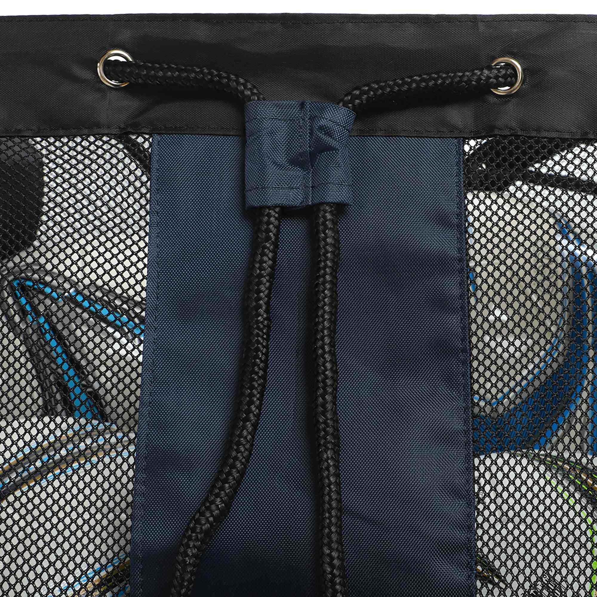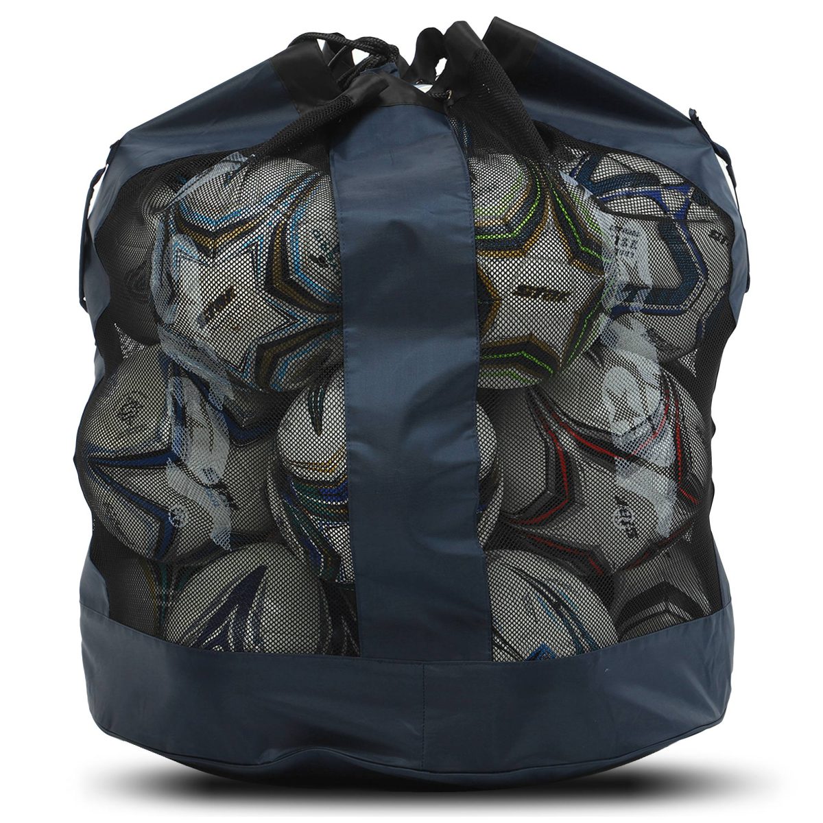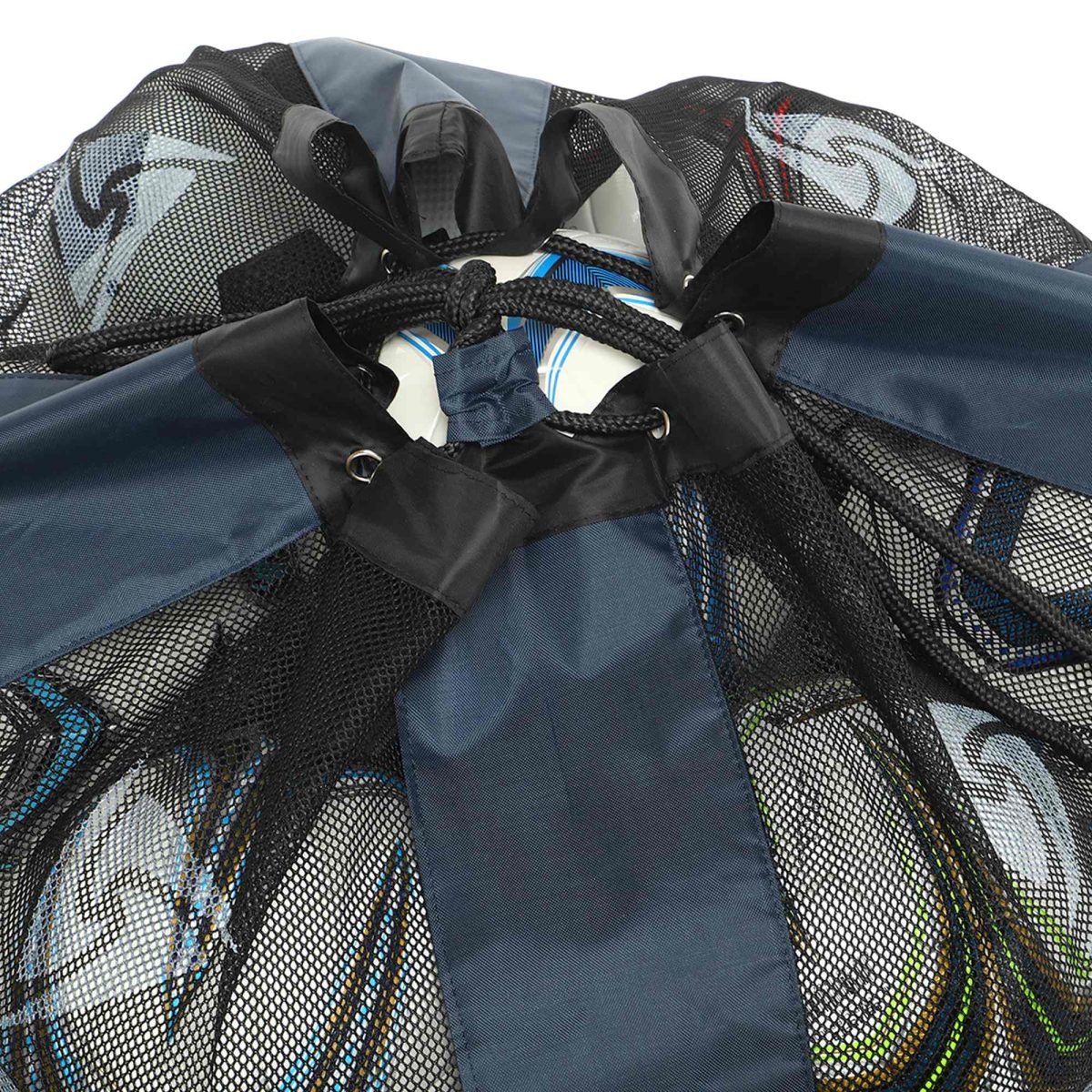 Сумка-рюкзак идеально подходит для организации тренировок по игровым видам спорта. Аксессуар вмещает до 20 мячей. Он изготовлен из комбинации сетки и полиэстера. Наличие вставок из сетки позволяет легко идентифицировать содержимое сумки.