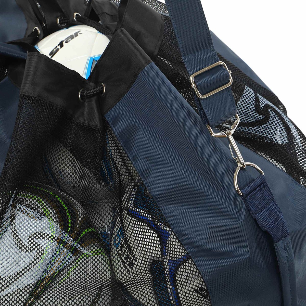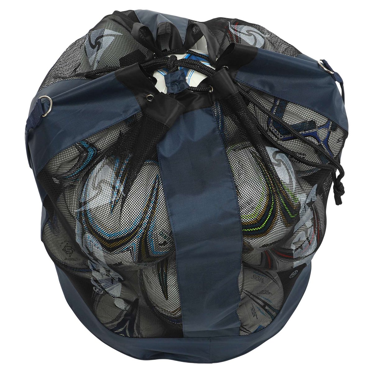 Сумка подходит для хранения и транспортировки футбольных, волейбольных, баскетбольных и гандбольных мячей. Переносить мячи можно благодаря удобной ручке, которая расположена сверху. Длинная шлейка пристегивается к сумке с помощью карабинов. Она регулируется по длине. Такое решение позволяет носить сумку с мячами на плече.