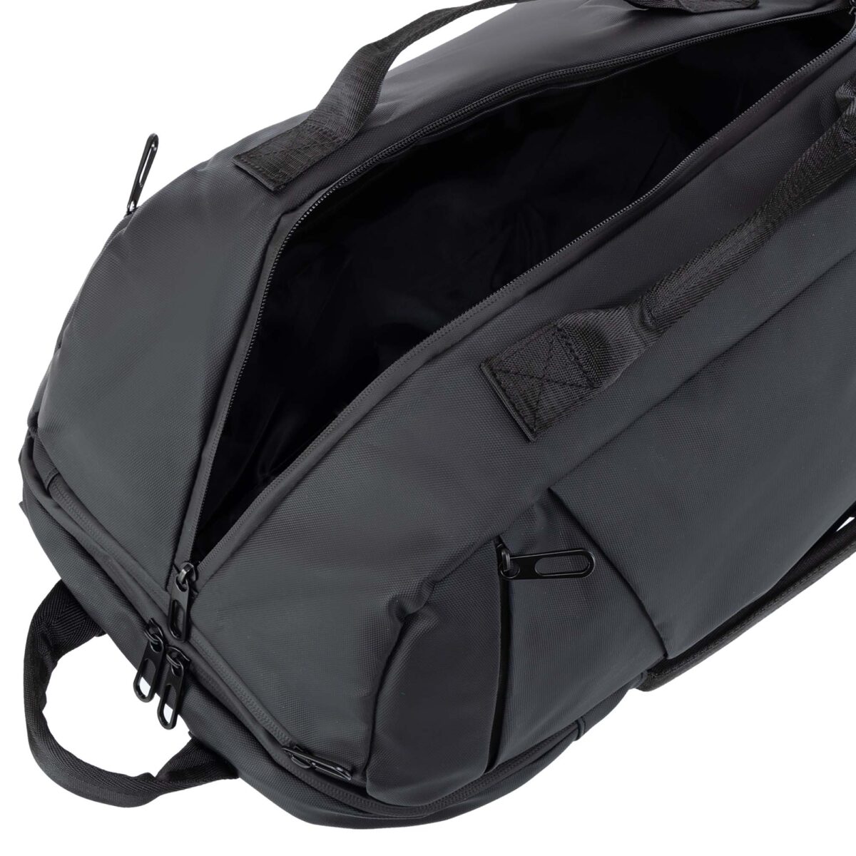 Сумка-рюкзак 2в1 — многофункциональный аксессуар для занятий спортом и непродолжительных поездок, который позволяет транспортировать большое количество вещей. Продуманный дизайн позволяет легко трансформировать сумку в рюкзак и наоборот. Внутри большого основного отделения можно разместить и удобно организовать все необходимое. В сумке есть специальное отделение для обуви. Держать под рукой важные мелочи, вроде ключей или зарядного устройства, позволяют боковые карманы на молнии.