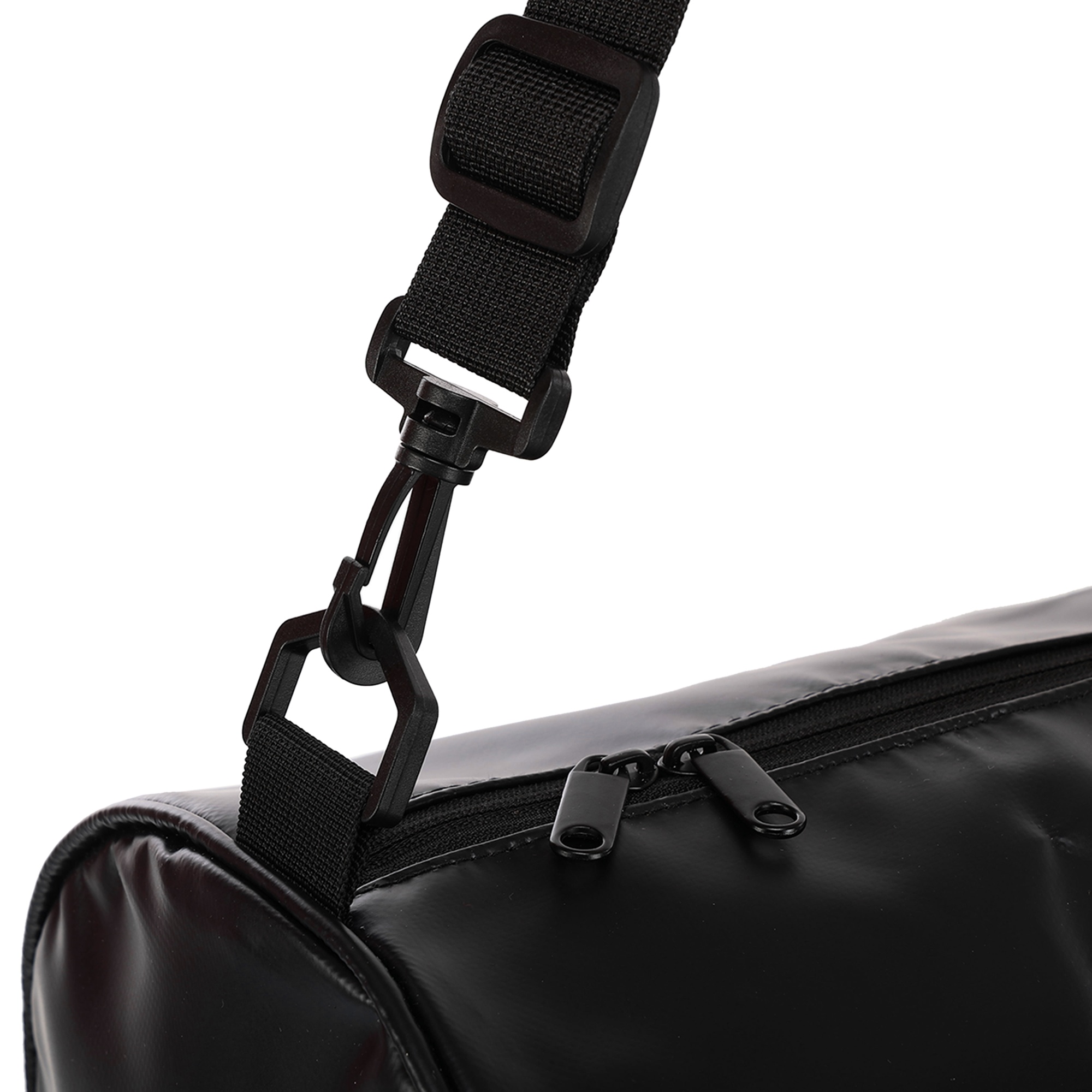 Сумка оборудована регулируемым плечевым ремнем и длинными ручками для удобной переноски. Мягкое усиление не натирает плечо и позволяет с комфортом переносить даже полностью загруженную сумку. Форма сумки — бочонок, на передней стороне и на ручках нанесен персонализированный логотип бренда.