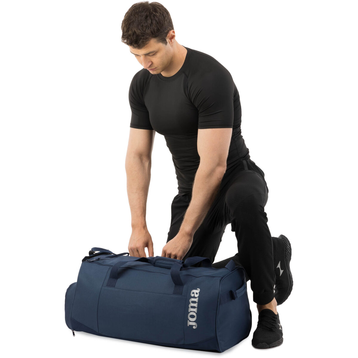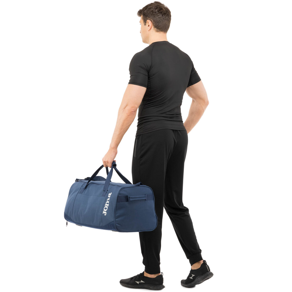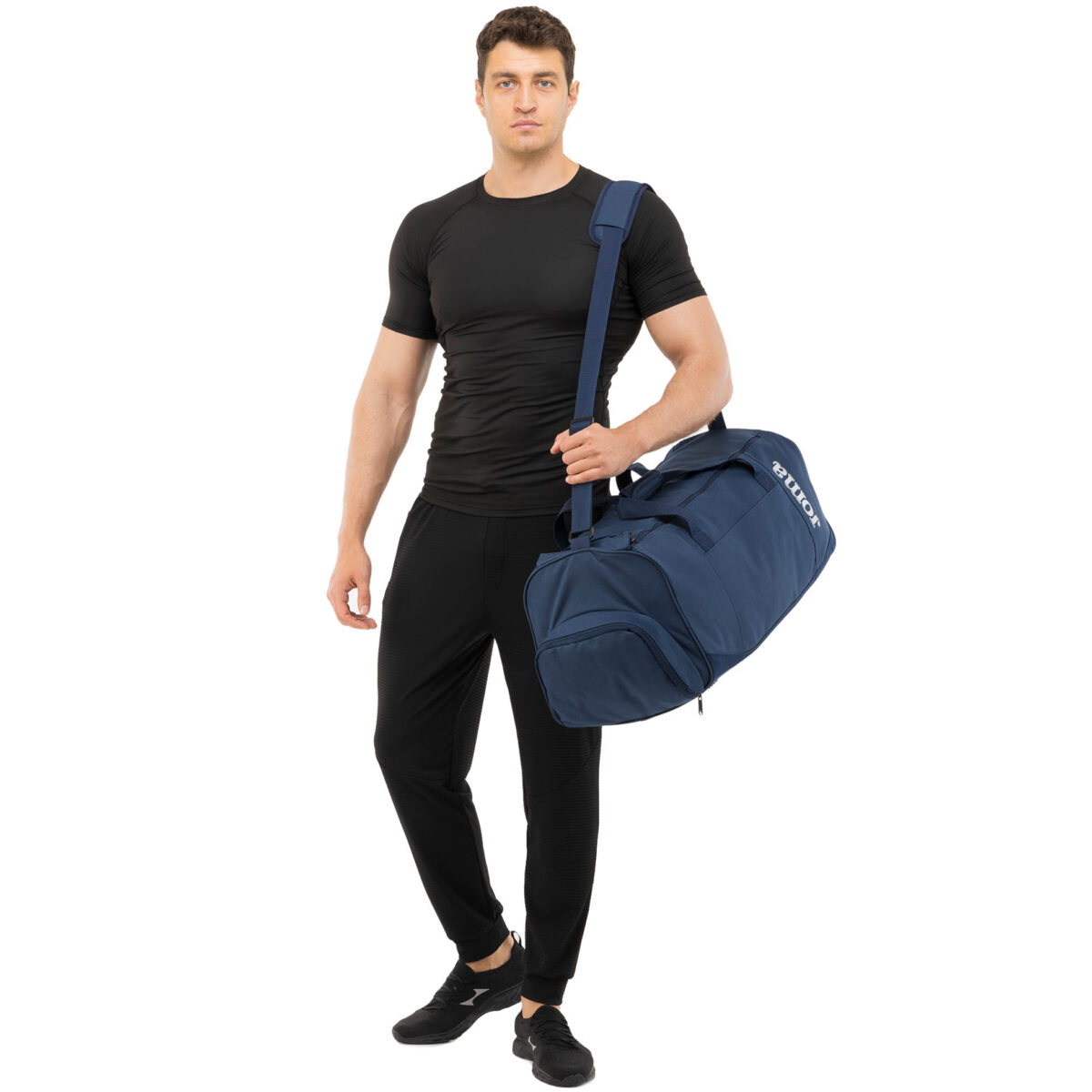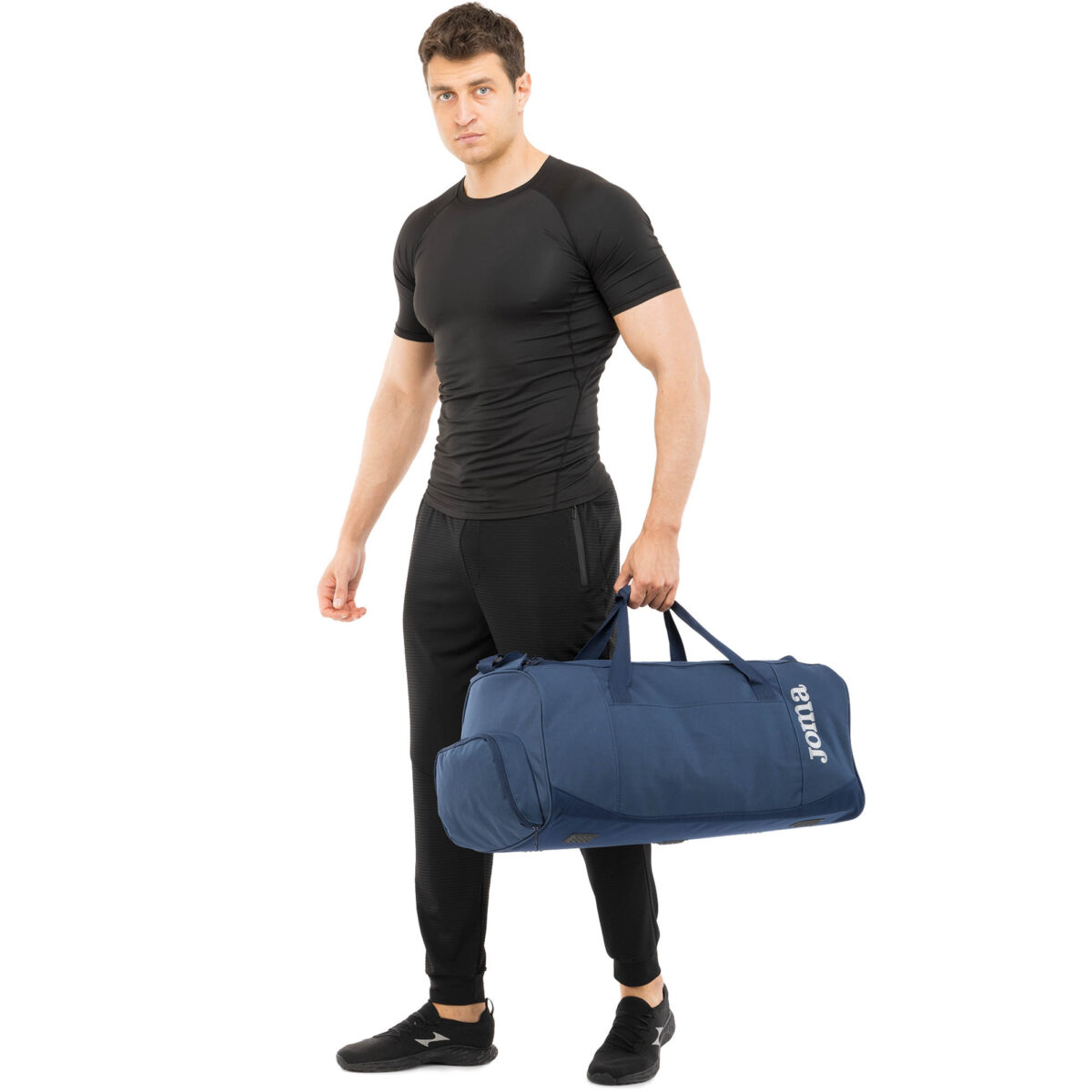 Спортивная сумка Joma TEAM имеет форму бочонка и объём 54 л. Сумка идеально подходит для транспортировки личных вещей — например, во время посещения тренажёрного зала или для непродолжительных путешествий. Основное отделение застёгивается на двойную молнию. Качественная фурнитура обладает длительным сроком службы. Внутри основного отделения имеется боковой карман. Удобно переносить сумку в руке позволяют мягкие ручки. Плечевой ремень регулируется по длине и позволяет удобно носить сумку на плече.