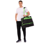 Вместительную сумку можно использовать во время посещения тренировок или для поездок на соревнования. Благодаря большому основному отделению, дополнительному карману сбоку и отделению для обуви вы сможете взять всё необходимое и разместить его максимально удобно. Такая сумка подойдёт для людей, посещающих тренажёрный зал, а также для футболистов, баскетболистов и других спортсменов.