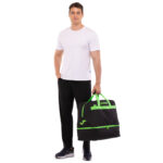 Сумка состоит из одного большого основного отделения, которое закрывается на молнию. Также в конструкции присутствует боковой карман на молнии, который подойдёт для хранения небольших личных вещей. Нижнее отделение рассчитано на хранение обуви. Оно изготовлено из прочной ткани, не допускающей проникновения запахов в основное отделение. Высота отделения для обуви составляет 13 см.