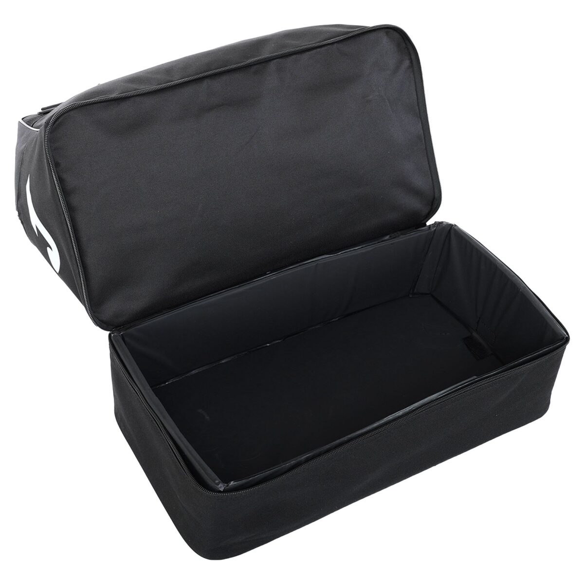 Для переноски предназначены удобные тканевые ручки и регулируемый плечевой ремень, позволяющий адаптировать аксессуар к потребностям и предпочтениям спортсмена. Материал сумки — полиэстер высокой прочности. Он выдерживает большие нагрузки без деформации, имеет небольшой вес и легко чистится.