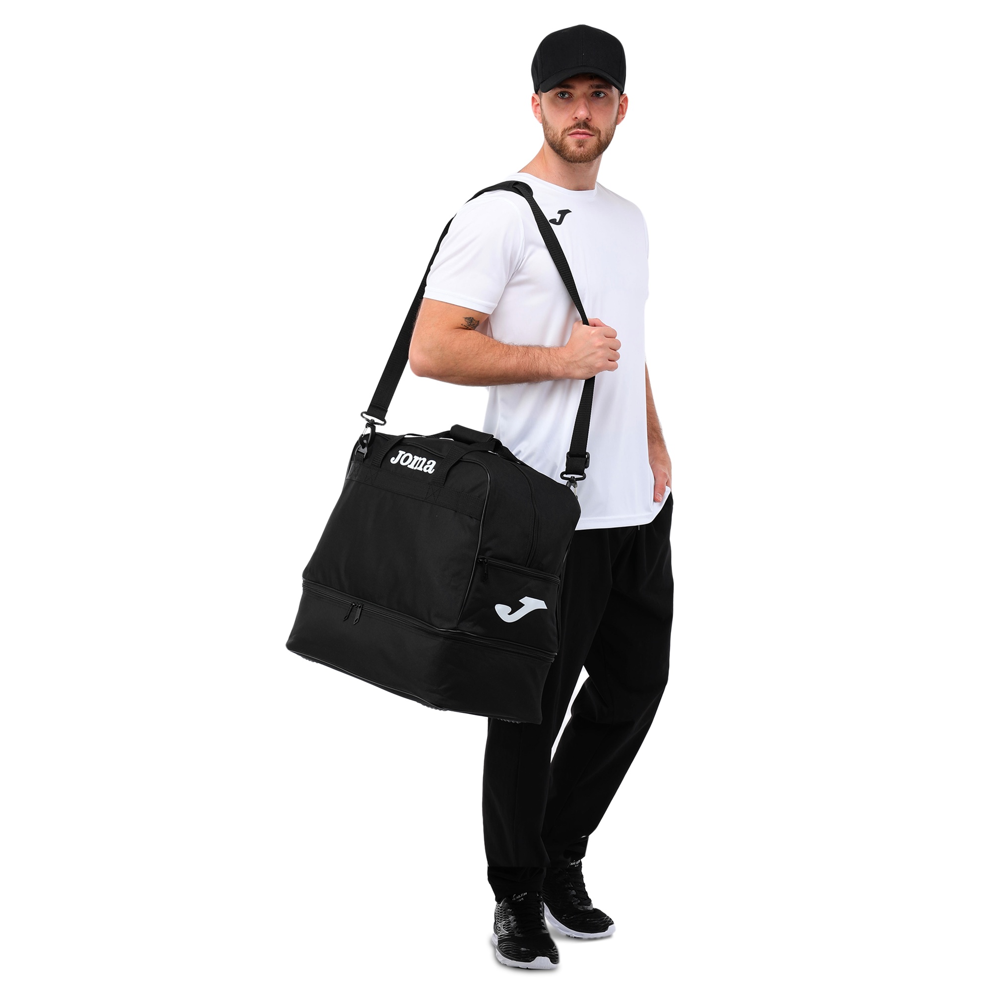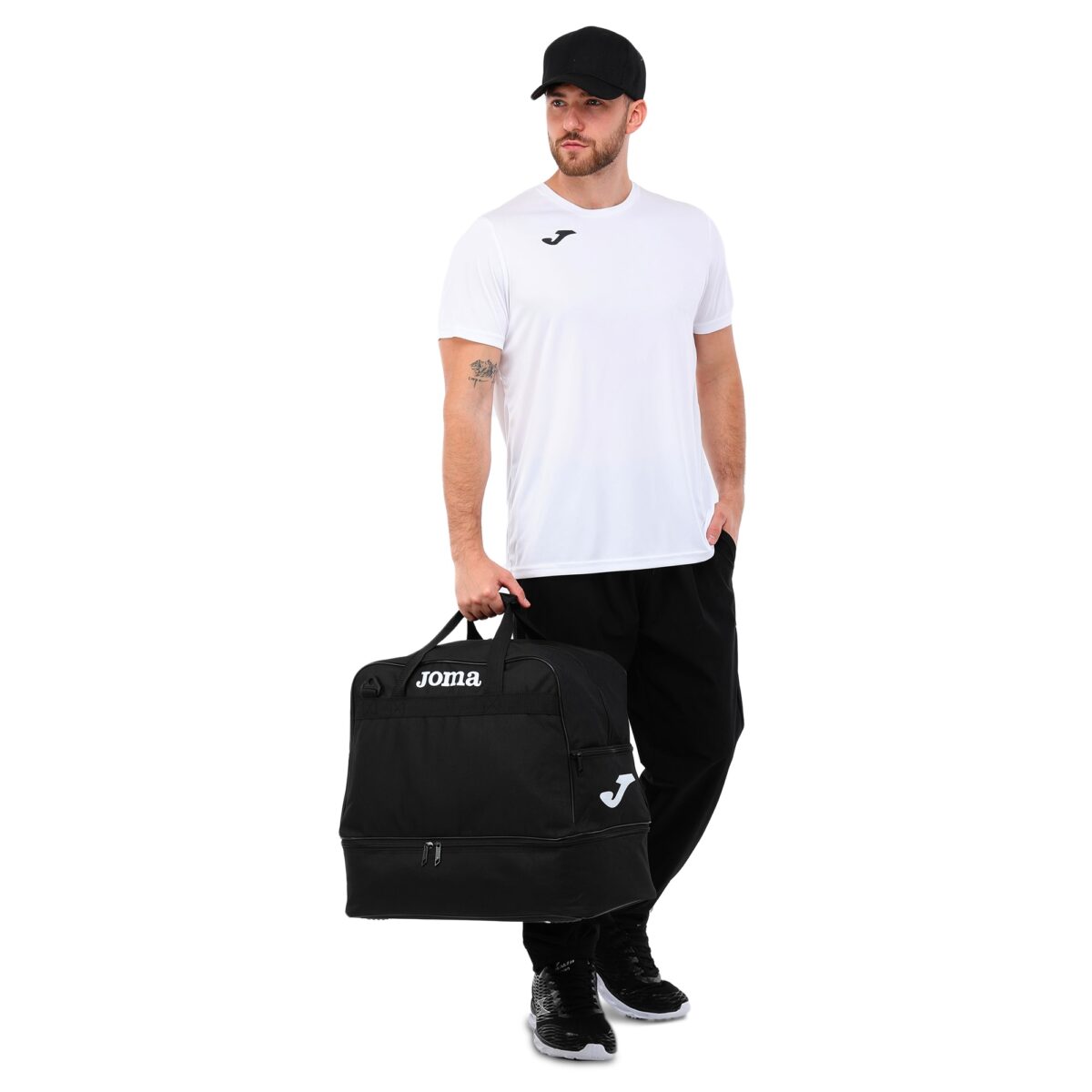 Сумка спортивная Joma TRAINING — практичный аксессуар со стильным современным дизайном и эффективно организованным внутренним пространством. Изделие имеет большое основное отделение, боковой карман для мелких вещей и вместительное отделение для обуви. Все карманы закрываются на молнию, чтобы обеспечить безопасность хранящихся внутри вещей.