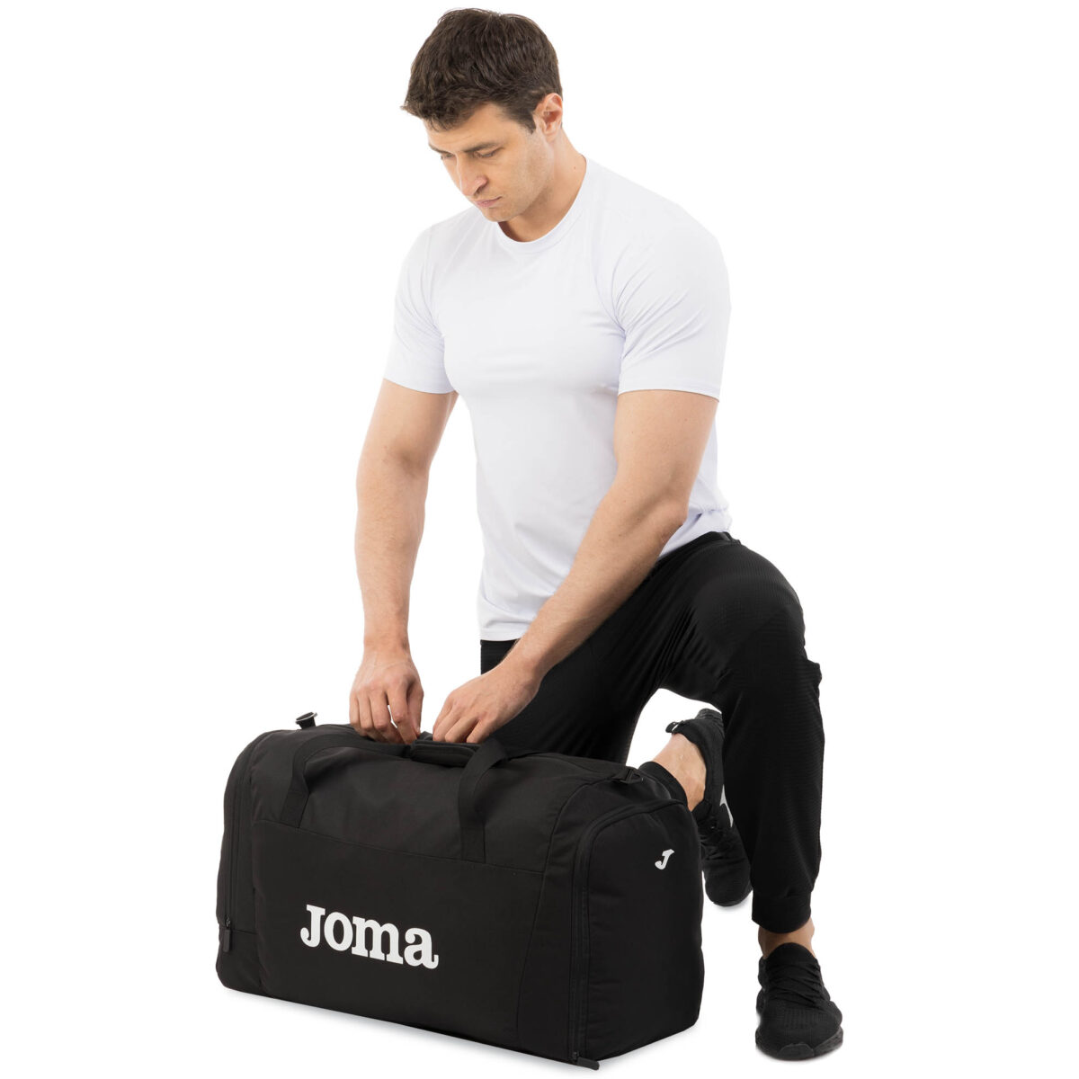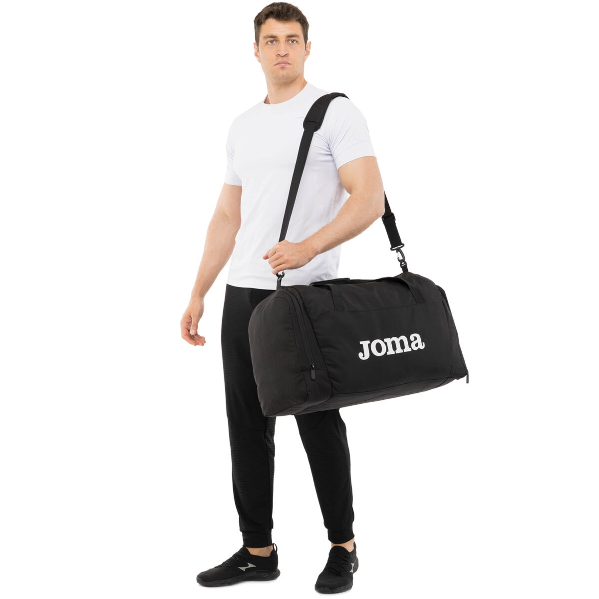 Joma TRAVEL — это вместительная сумка, которую можно использовать для поездок на соревнования, в путешествия или посещения тренировок. На тренировку взять с собой можно будет все необходимое.  Сумка выполнена из полиэстера. Она прочная и долговечная. Вы можете безопасно перевозить в такой сумке личные вещи, экипировку или спортивный инвентарь.